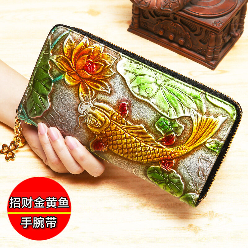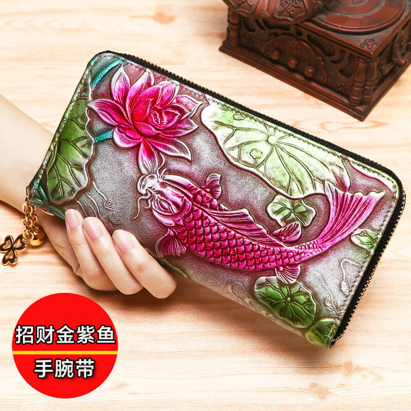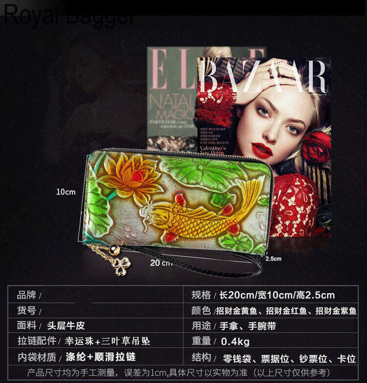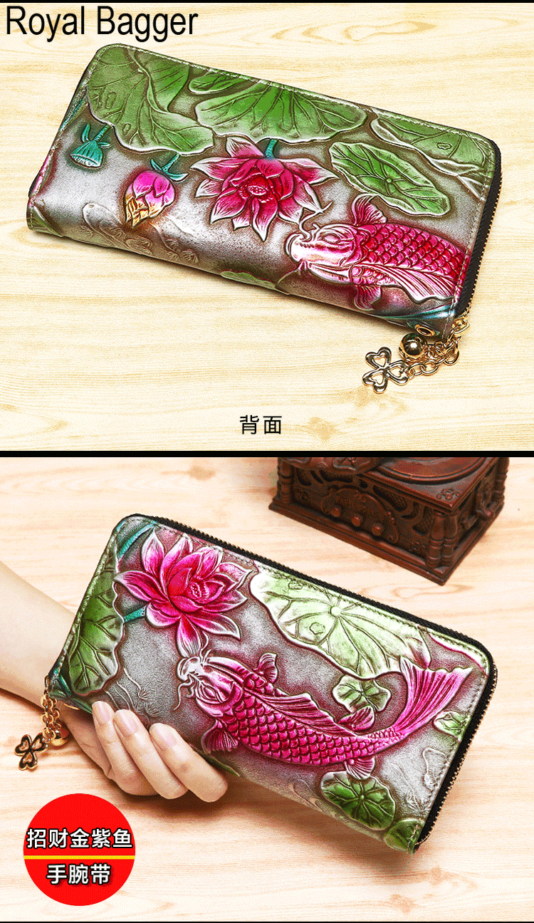 Royal Bagger Genuine Cow Leather New Fashion Women Girls Long Wallet Purse Super Hot High Capacity Retro Flower Clutch Bag Handbag Women's Multifunction Bags Casual Multi-Card Position Wallets