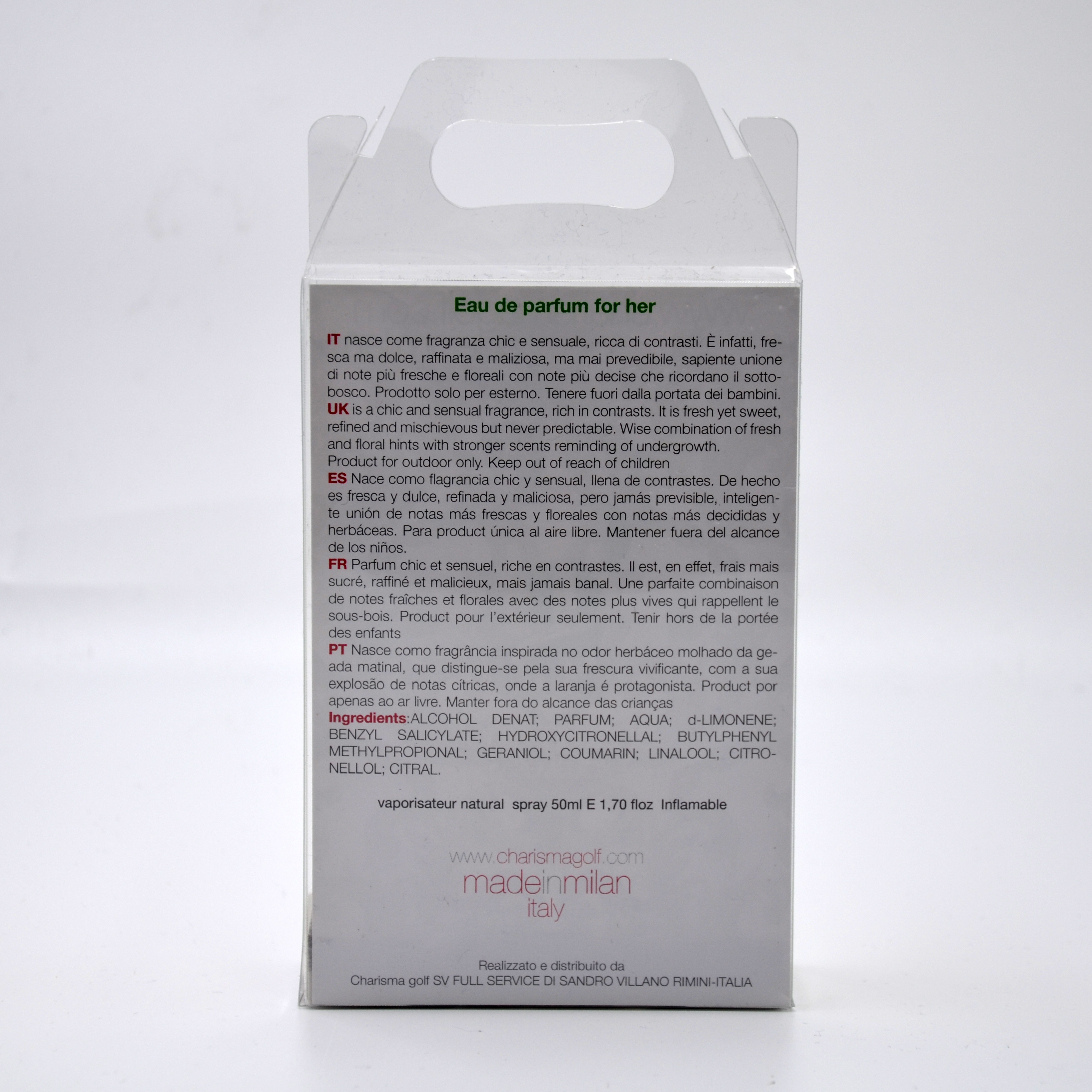 Charismagolf for her, is a chic and sensual fragrance, rich in contrasts