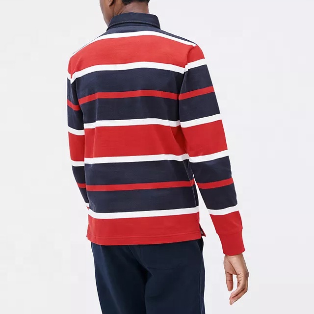 Men 100% Cotton Multiple Color Striped Long Sleeves Rugby Polo Shirt for Men Custom Embroidered Logo