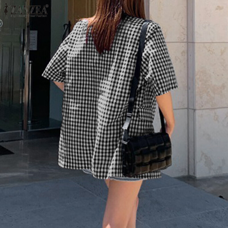 ZANZEA Women Summer Casual Cape Cloak Coat Plaid Check Jackets Tops Plus Blazers Suits