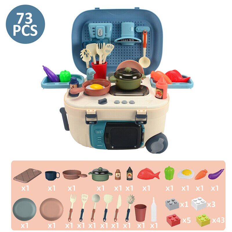 HYG Kitchen Toys Cooking Toys 79PCS Children's Kitchen Toys Baby Family Spray Kitchen Suitcase Storage Kitchen Toys Small Kitchen Toy Set Simulation Spray Toys Sink Running Water and Other Kitchen Acc