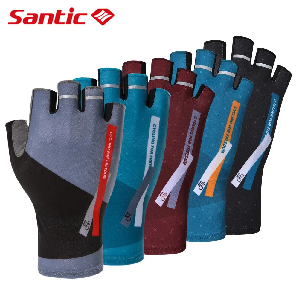 Santic Men Cycling Gloves Breathable Non-slip Shockproof Bike Bicycle Short Finger Gloves