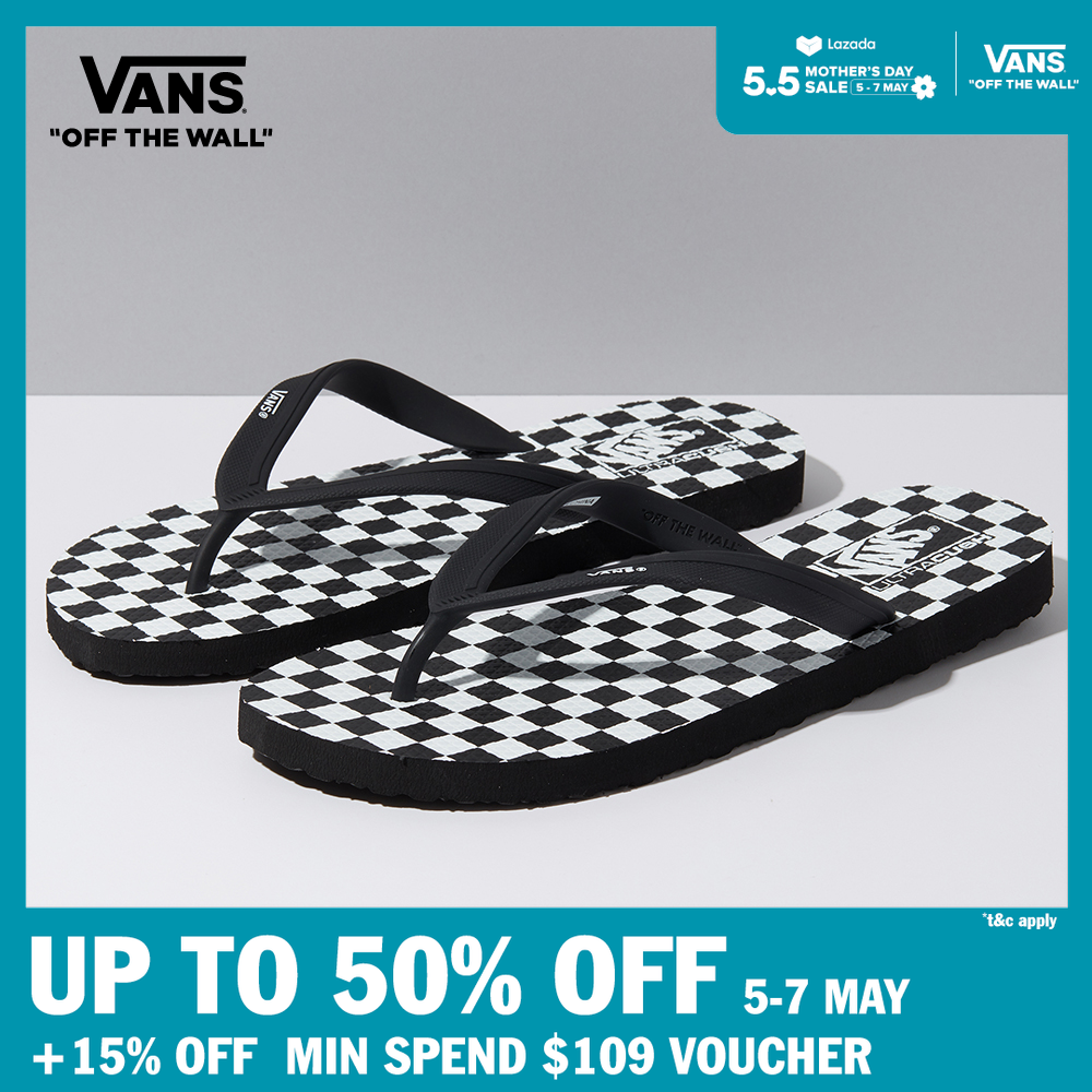 The Checkerboard Makena sandal features soft, PVC-free TPE straps, a one-piece rubber footbed with the Vans waffle emboss and checkerboard graphic details, and a durable sponge rubber waffle pattern outsole. It is made with water-based inks and glue.