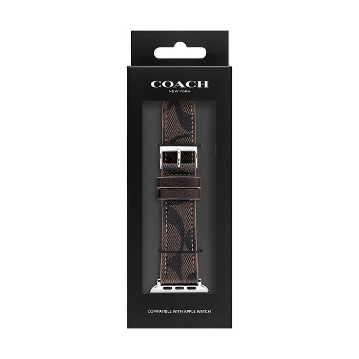 This mahogany strap is crafted of Coach Signature canvas and secures with black ionic hardware.