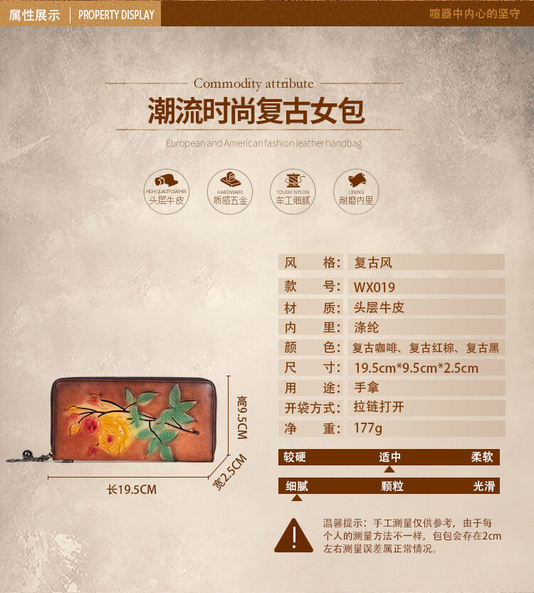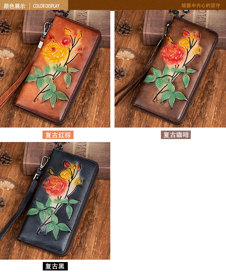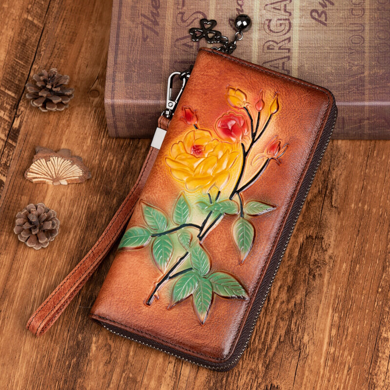Royal Bagger Genuine Cow Leather New Fashion Women Girls Long Wallet Purse Super Hot High Capacity Retro Flower Clutch Bag Handbag Women's Multifunction Bags Casual Multi-Card Position Wallets