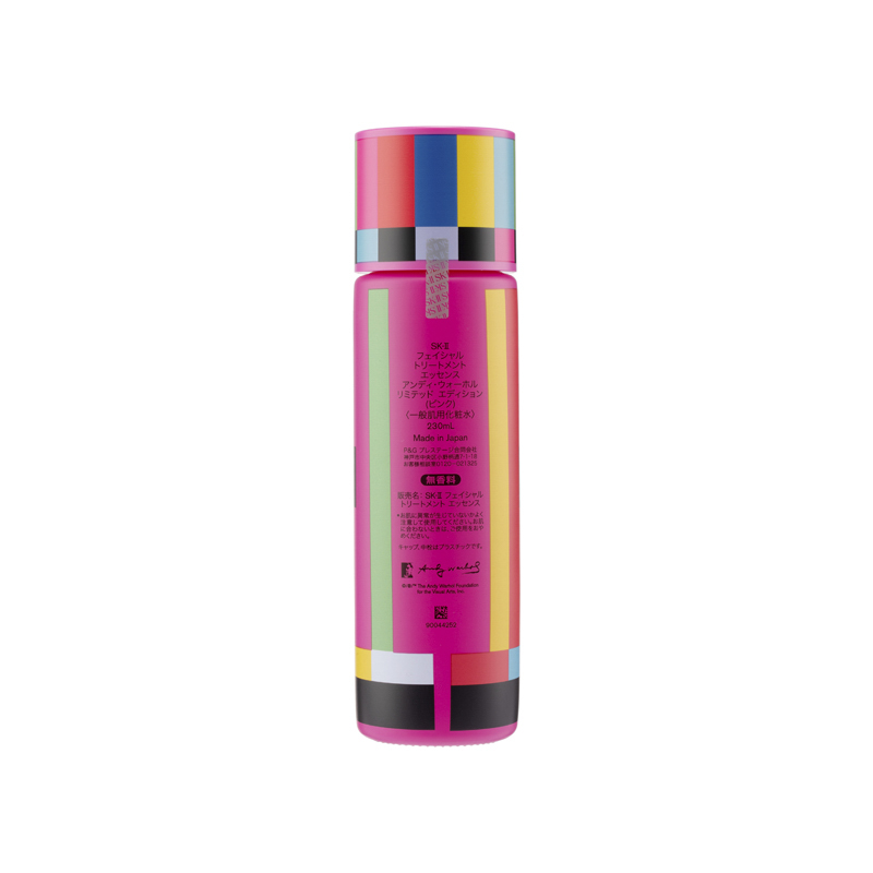 SK-II Pitera™ Essence Andy Warhol Limited Edition (#Pink) (230ml) Crossover with the famous artist Andy Warhol, this limited edition of the signature essence water is in chic and unique packaging. Formulated with the signature Pitera™, skin would appear to be dewy, translucent and revitalized.Product Features:•Skin revitalizing: this essence water is rich in Pitera™ to maintain skin generation cycle, leaving skin balanced and resilient. It also helps to remove old dull skin cells for a silky and dewy texture.•Anti-aging: it replenishes skin with abundant moisture and nutrients, helping to blur wrinkles and fine lines, leaving skin radiant and youthful.•Lightweight texture: its watery texture penetrates skin fast to nourish and revitalize. It also boosts the effects for the subsequent skincare.Ingredients :•Pitera™: boosting skin circulation •Natural Moisturizing Factor: nourishing