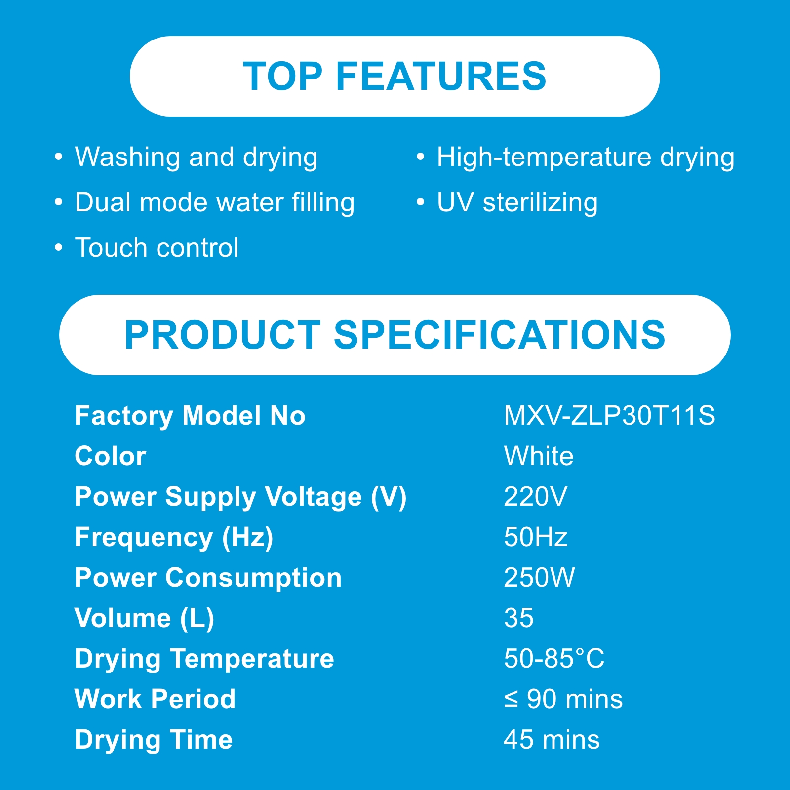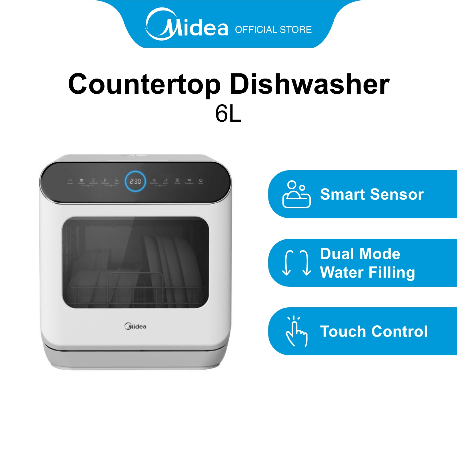Midea MDWS-2703 White Health Washing Mini Plus Dishwasher, 6L