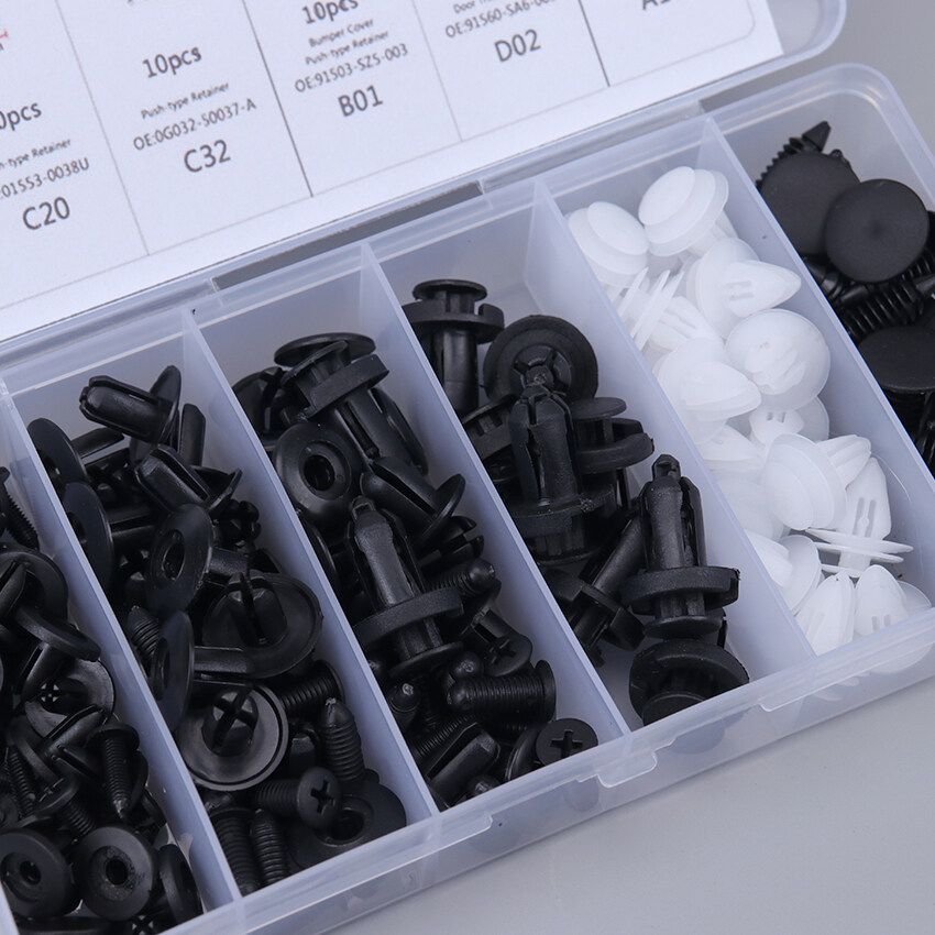 These clips fasteners are made of nylon material, suitable for car use. Cars good accessories, commonly used for fitting side skirts, bumpers, and other trim. Push Type Retainer Kit came with a nice plastic box for easier to pick a type of retainer that you want to use. Need not worry about lost or damaged body fasteners.All the necessary retainers for the exact replacement of old and broken retainers.
