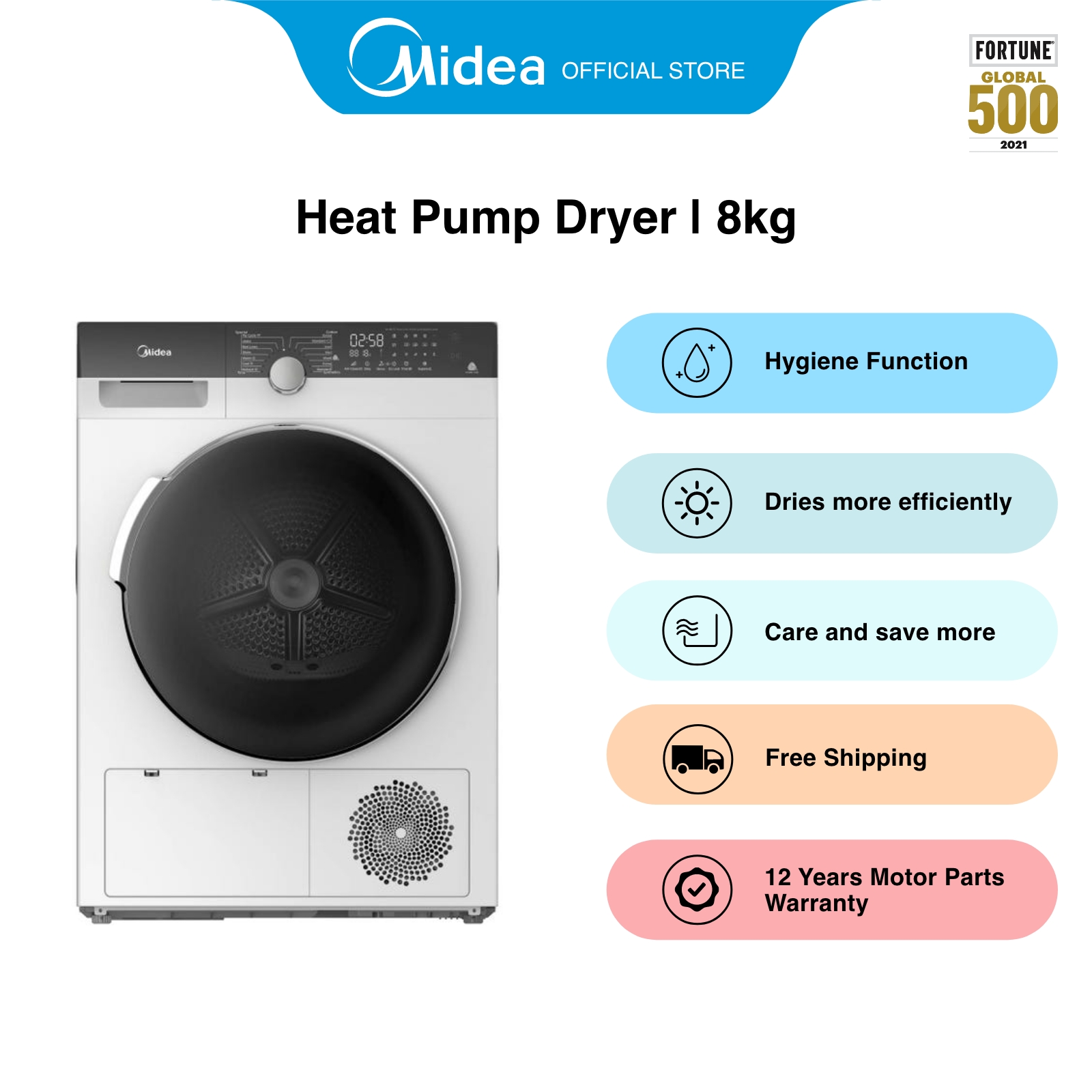 [Bulky] Midea MDK888HP White Heat Pump Dryer, 8kg, Energy Rating 5 Ticks