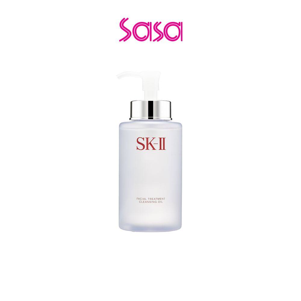 SK-II Facial Treatment Cleansing Oil (250ml) Enriched with Pitera™ essence and apple seed essence to deeply clear dirts from pores and dissolve makeup, bare face appears clean and pure.Product Features:• Conditioning : Rich in Pitera™ essence and apple seed essence, skin quality is enhanced with improved glow and reduced spots. This cleansing oil softens skin while moisturizes it.•Purifying : Superior emulsification power effectively dissolves and removes makeup, easily cleanse skin in contact with water.•Calming : Mild texture comforts skin without leaving a tense sensation after use, brightening skin.Ingredients:• Pitera™ Essence, Apple Seed Essence : Improving skin quality, luster, spots, etc., Softening while moisturisingHow to use:STEP1:Take an appropriate amount on dry palm and apply on entire dry face, gently massage. STEP2:Add a small amount of water, continue massage with both hands. STEP3:Rinse with clear water, apply more on desired area with heavy makeup.
