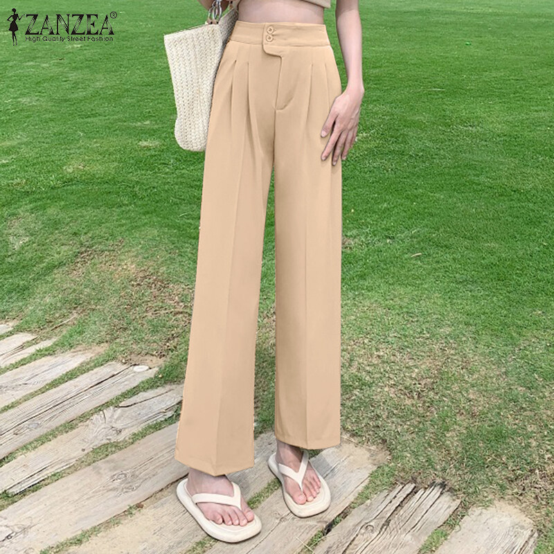 ZANZEA Korean Style Women High Waist Solid Casual Outing Loose Long Suit Pants Trousers