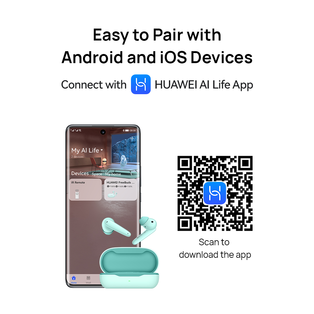 【Compatible with Android and iOS】By downloading the HUAWEI AI Life app (supported on HarmonyOS, Android, and iOS*), you can customize the touch settings on your HUAWEI FreeBuds SE.