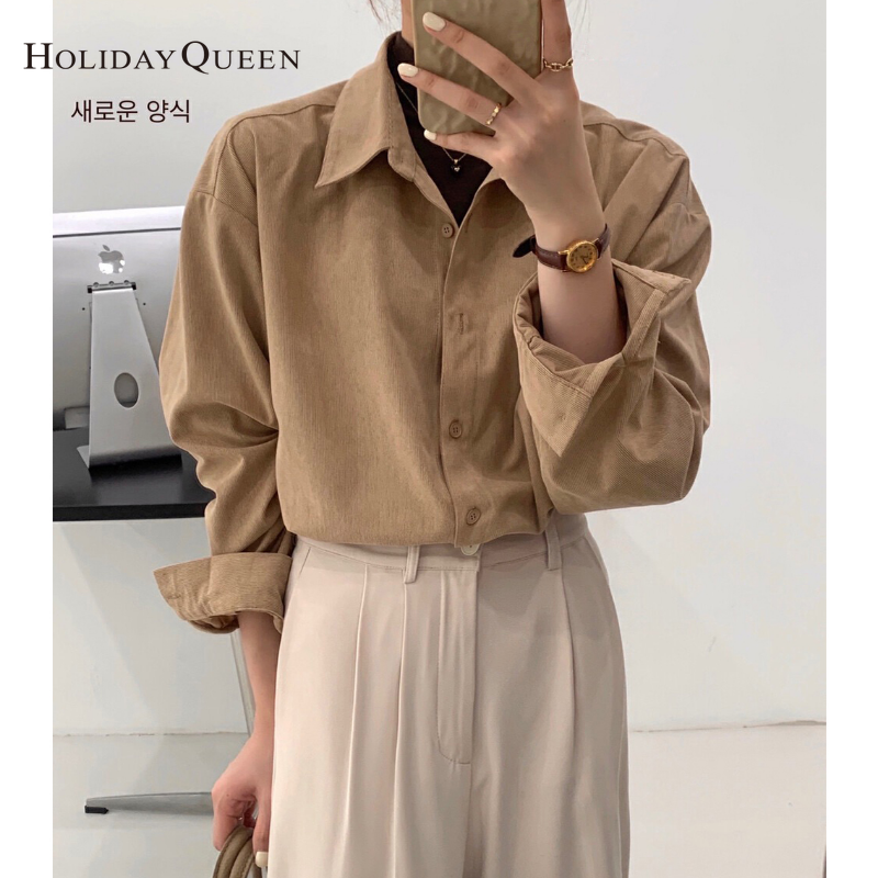 HolidayQueen Korean Edition Fall/Winter 2022 New Corduroy Thick Long-sleeved Shirt Stacked Shirt Tops Free Shipping HQ1854