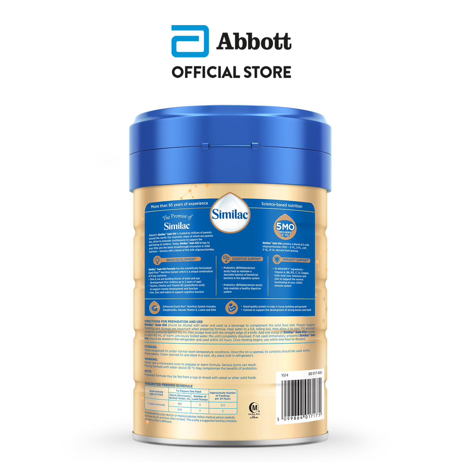 Similac Gain 5MO Stage 4 Kid Pre-school Milk Powder Formula 850g (3 years onwards)