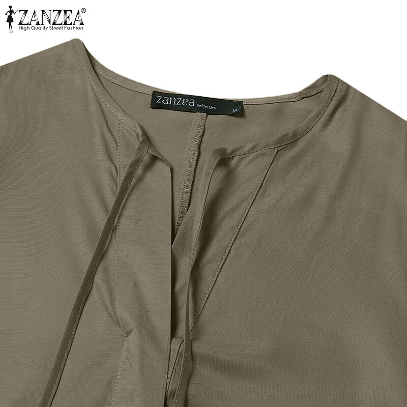 ZANZEA Womens Long Sleeve V Neck Plain Casual Holiday Prom Night Gown Swing Maxi Dress #15