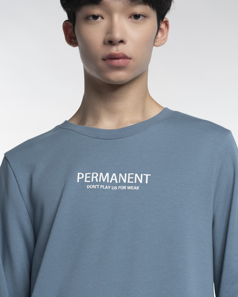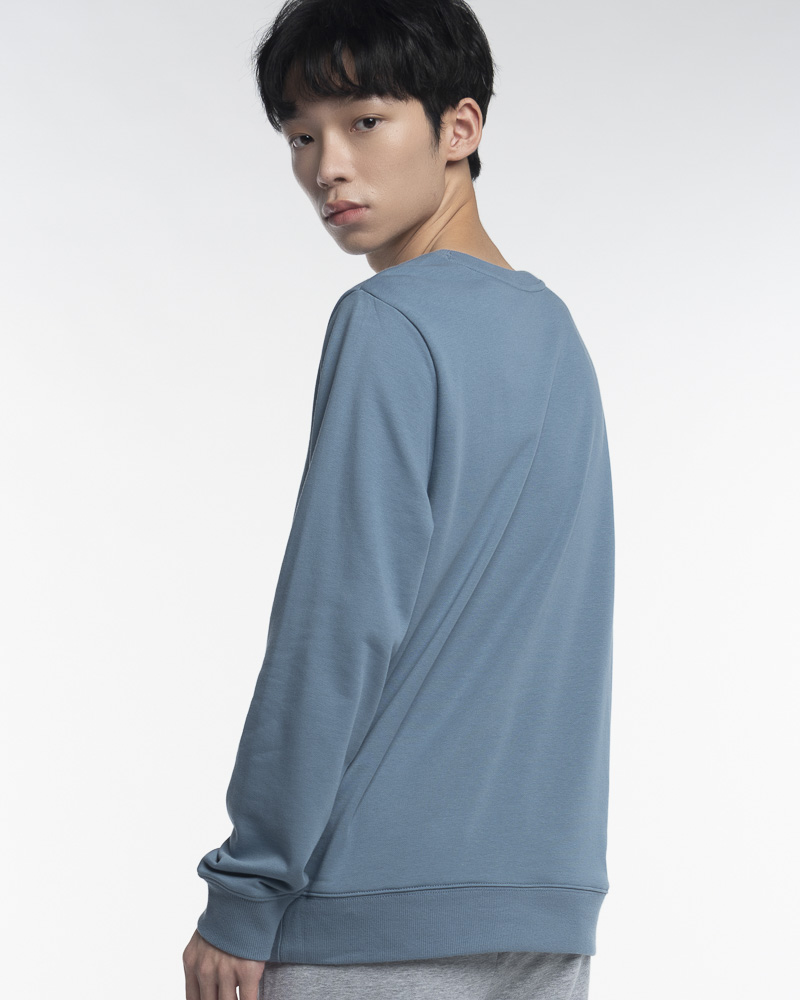 Yishion Men Solid Coloured Long Sleeve Sweatshirt with Permanent Slogan (Stone Blue)
