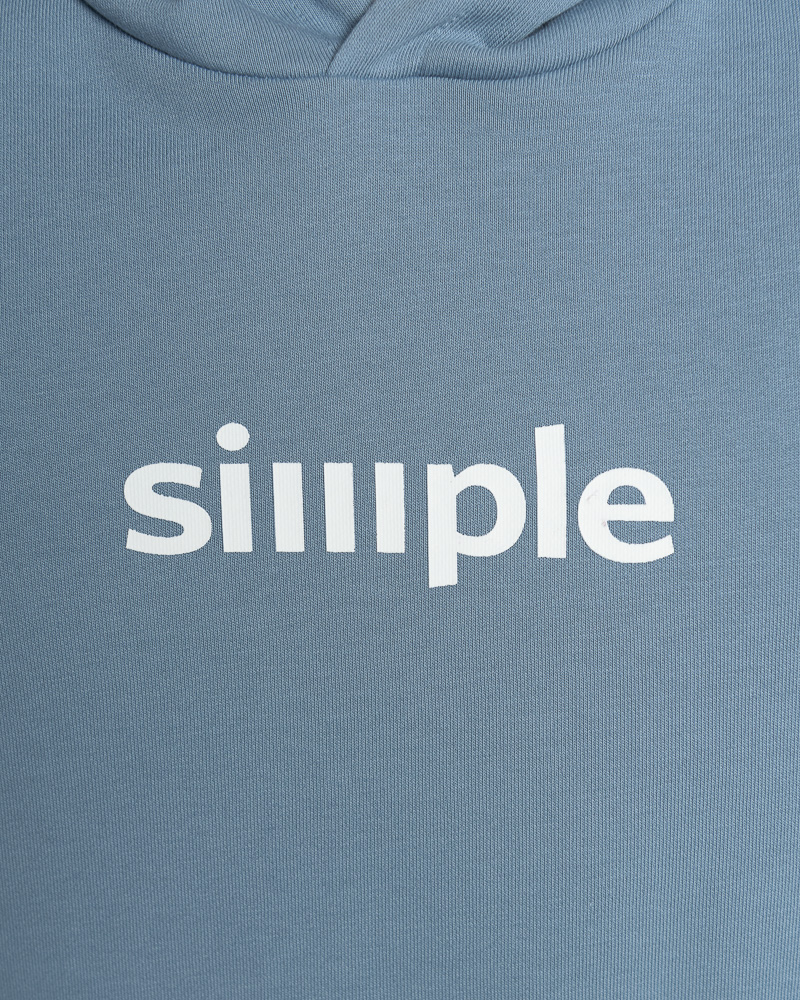 Yishion Men Solid Colour Pullover Hoodie with Kangaroo Pockets and SIMPLE Slogan Patch (Stone Blue)