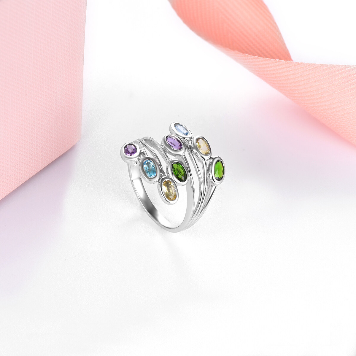 Multi-color Natural Gemstone Geniune Crystals Silver 925 Original Design Ring Fine Elegant Classic Jewelry Korean Style for Woman Gift