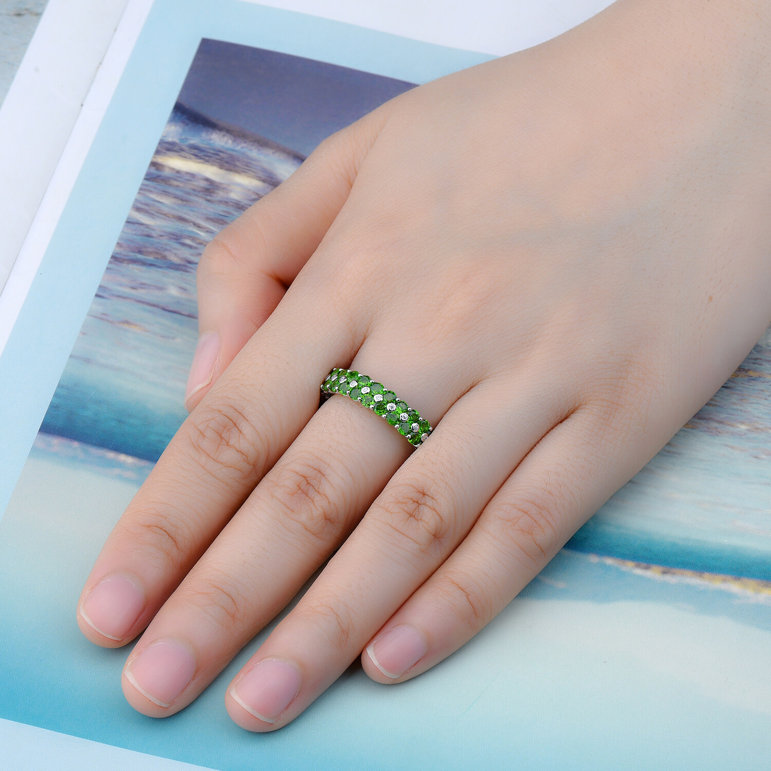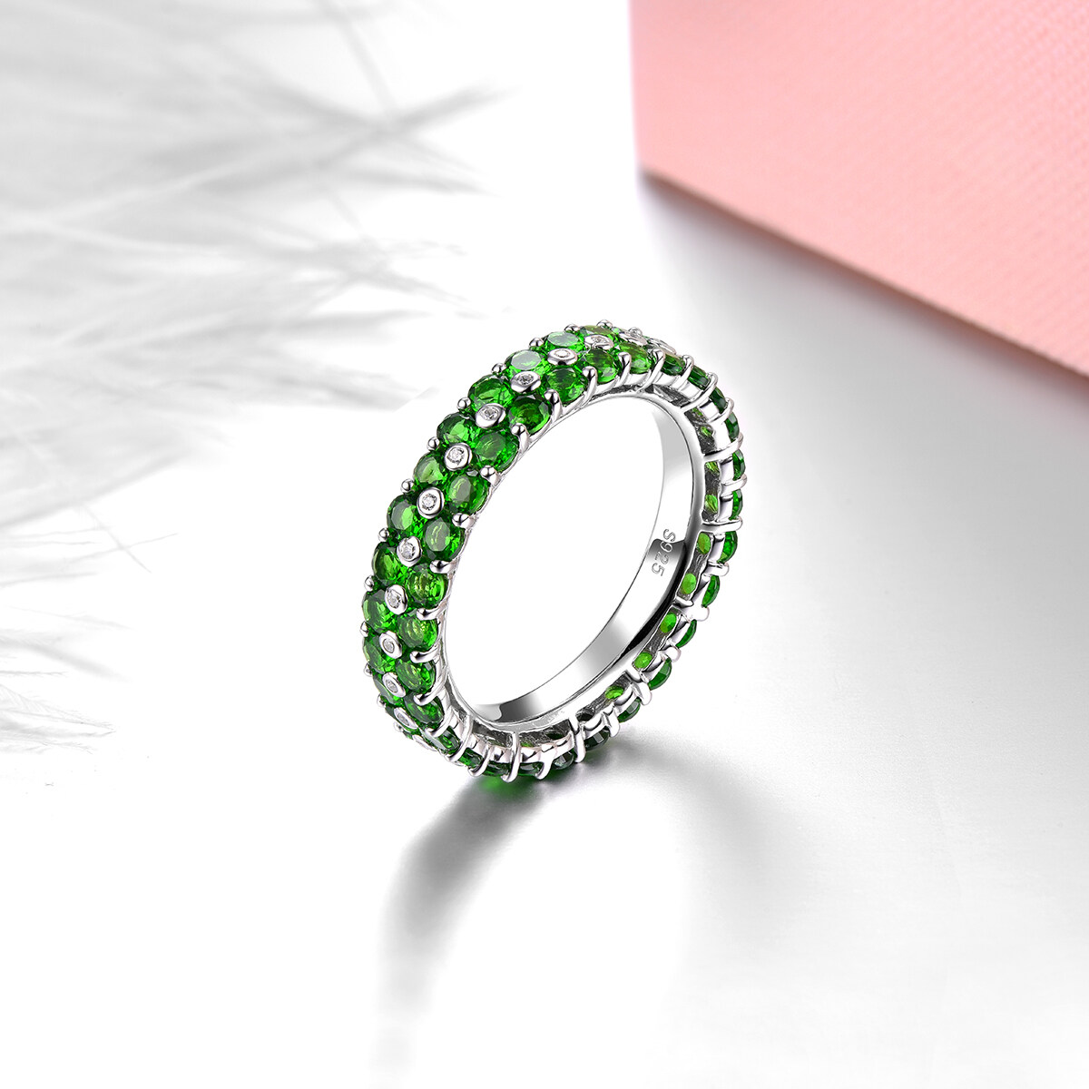 4.5Carats Original Solid Sterling silver 925 Ring Natural Chrome Diopside Eternity Ring Green Gemstone Silver 925 Eternity Ring For Lady Jewelry Wedding Gifts