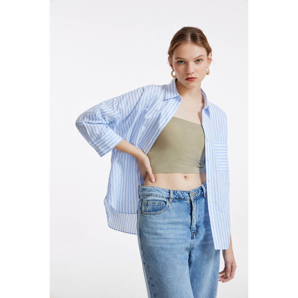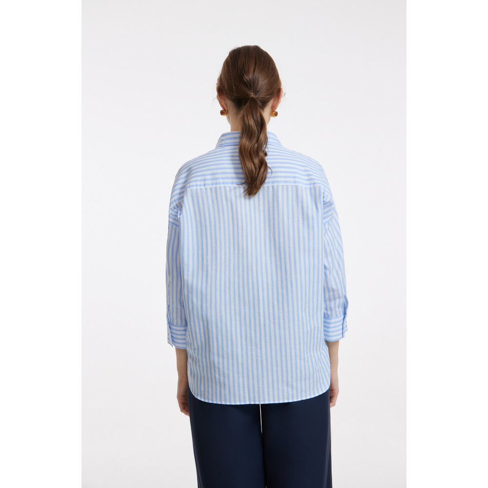 G2000 Women Ocean Oversized Fit Linen Stripe Shirt