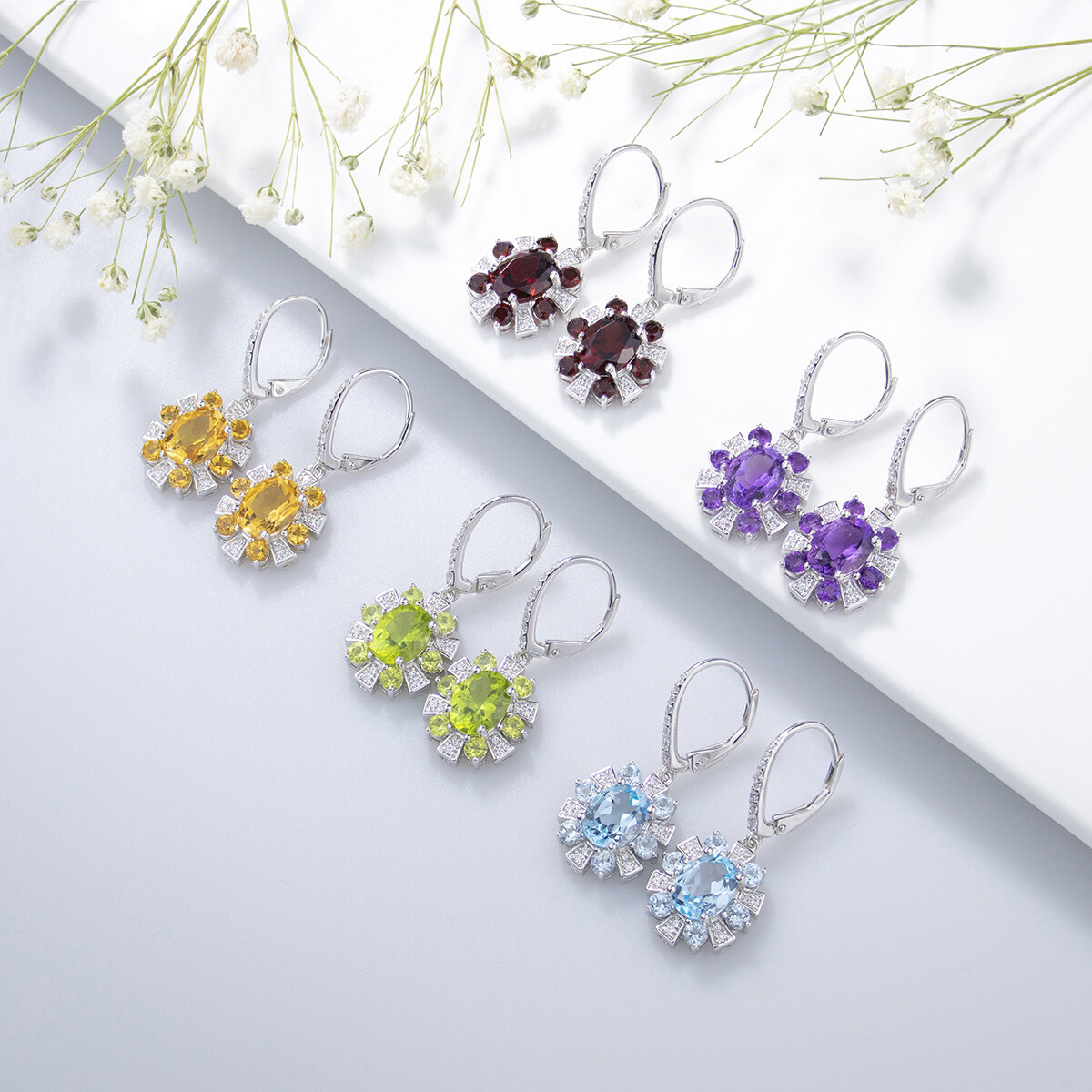 Sterling Silver S925 Original Drop Earrings Natural Topaz Genuine Gemstone Women Top Quality Coloful Jewelrys Wedding