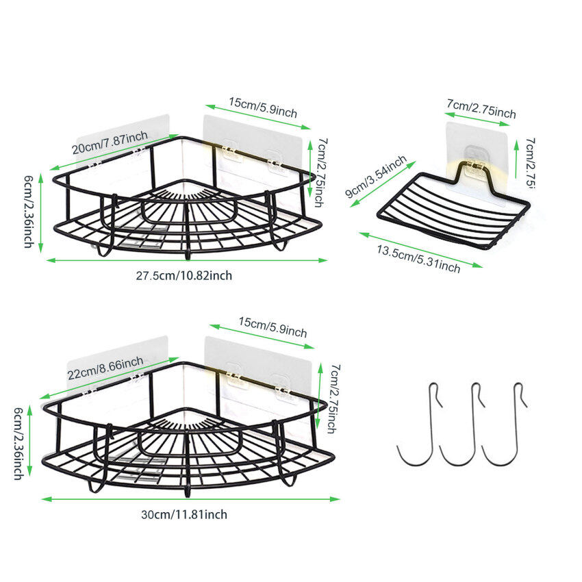 4. Two corner shower boxes will provide a large space for your bathroom or kitchen to store and organize your daily supplies. This bathroom shelf can hold up to 30 pounds of shower supplies and works great on smooth walls.