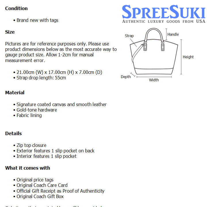 All our products are 100% authentic and purchased from Coach stores in USA. We are a reputable registered business in Singapore and it is illegal to sell counterfeit goods in Singapore. This product also comes with a gift receipt which is printed by the Coach store that we purchased the item from. It states the item that we purchased and the Coach store that it was purchased from, proving the authenticity of the item. Buy with confidence.