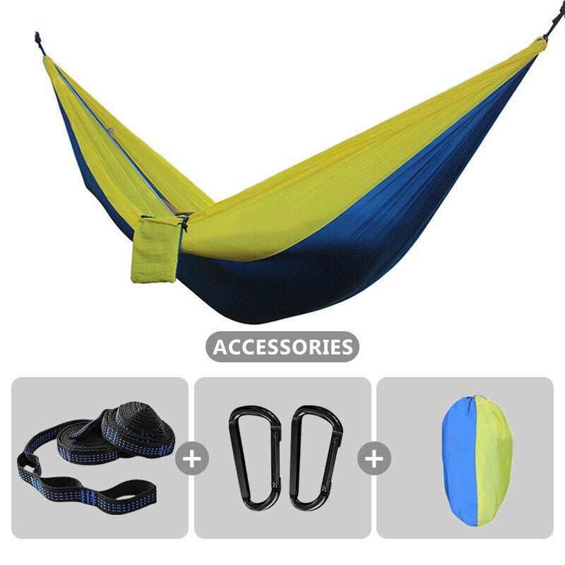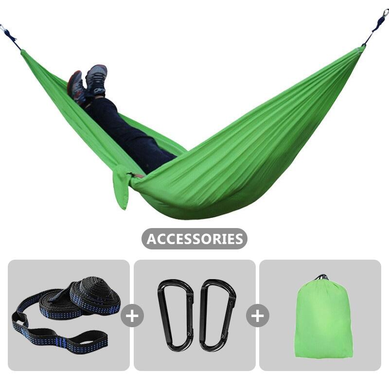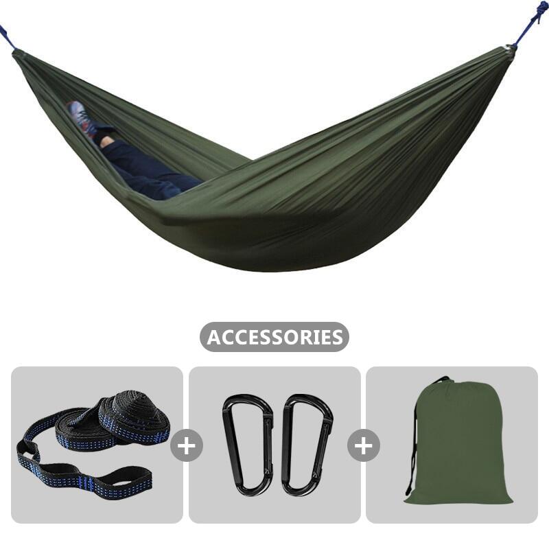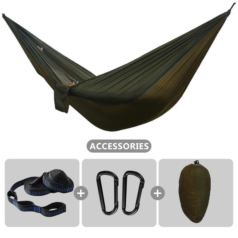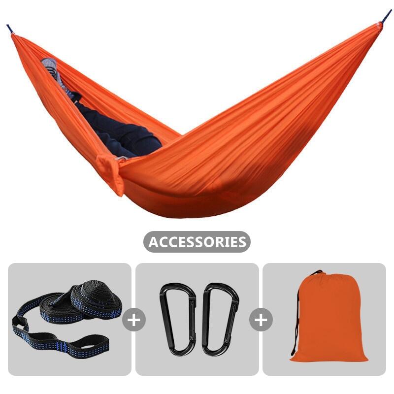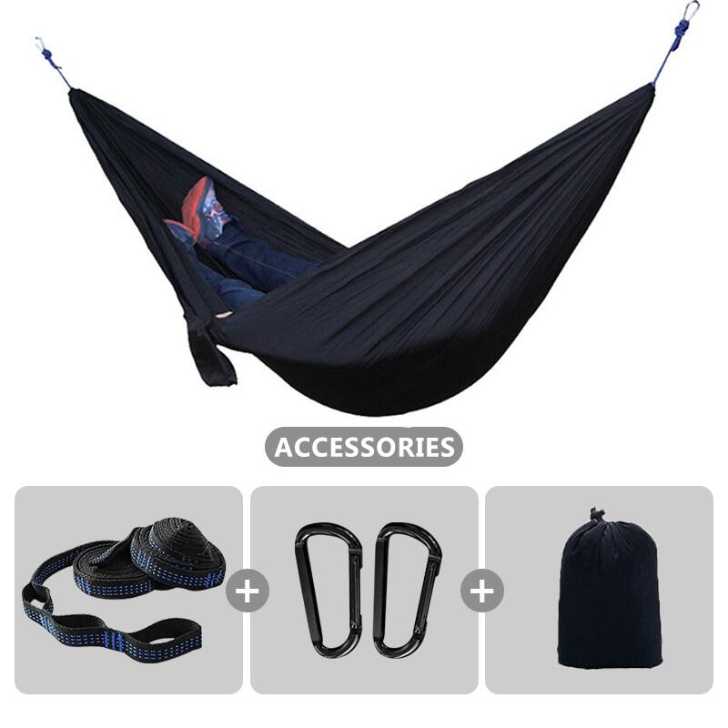 Soft material & Support 500 pounds - Our hammocks are made of new high quality 210T parachute nylon fabric, it is very comfortable and durable. The camping hammocks provide relaxing support up to 500 lbs.