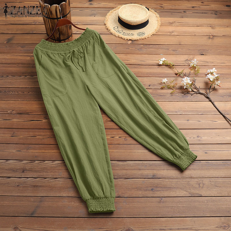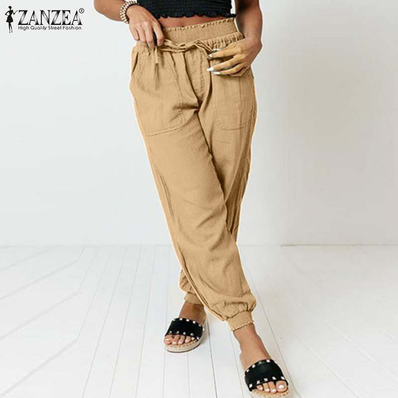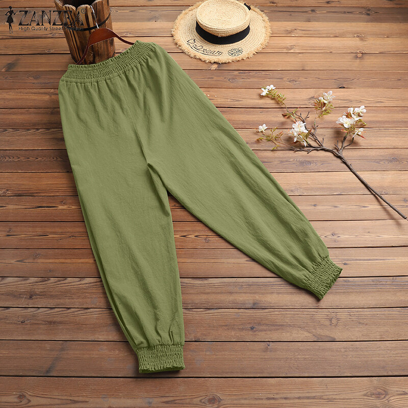 [Clearance Sale] ZANZEA Women's Legging Loose Wide Leg High Waist Pants Casual Wrap Trousers Plus CLE #1