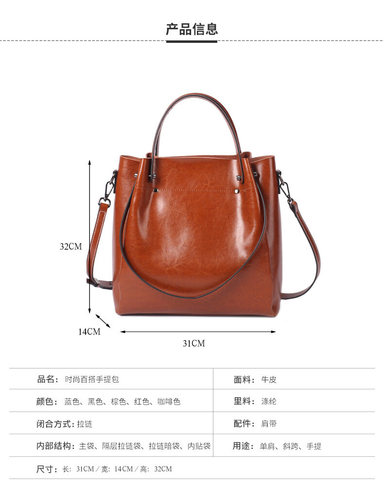 Royal Bagger New Fashion Tote Bag For Women Genuine Cow Leather Casual Large Capacity Shoulder Bag Elegant Ladies Girl Crossbody