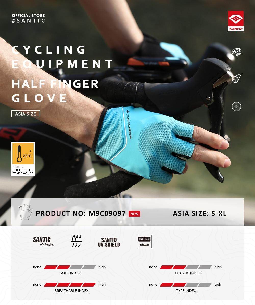Santic Cycling Gloves Men Women Breathable Shockproof Bicycle Bike Half Finger Gloves