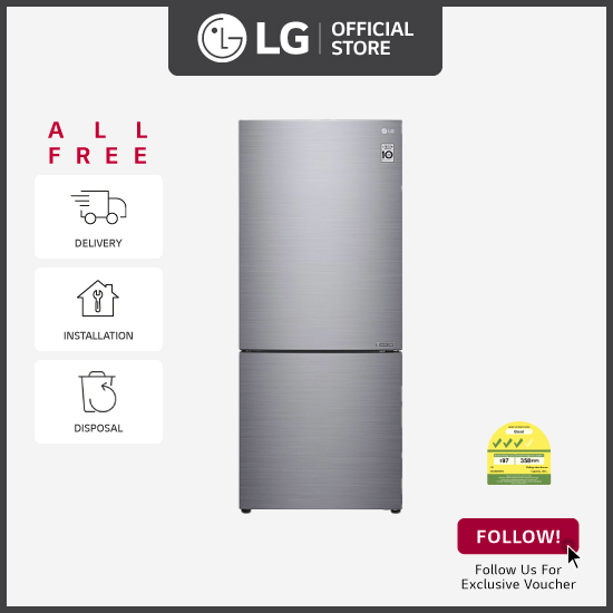 [Bulky] LG GB-B4059PZ 2 Doors Smart Inverter Bottom Freezer Refrigerator, 408L, Platinum Silver + Free Delivery + Free Installation + Free Disposal