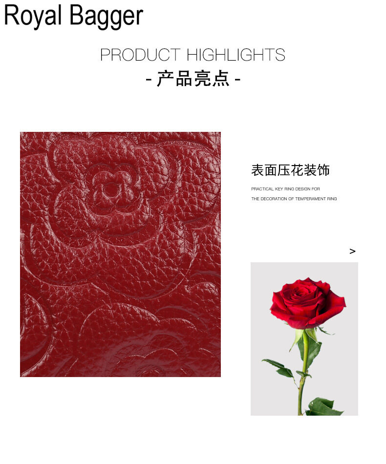 Royal Bagger Genuine Cow Leather New Fashion Women Girls Long Wallet Purse Super Hot High Capacity Retro Flower Clutch Bag Handbag Women's Multifunction Bags Casual Multi-Card Position Wallets