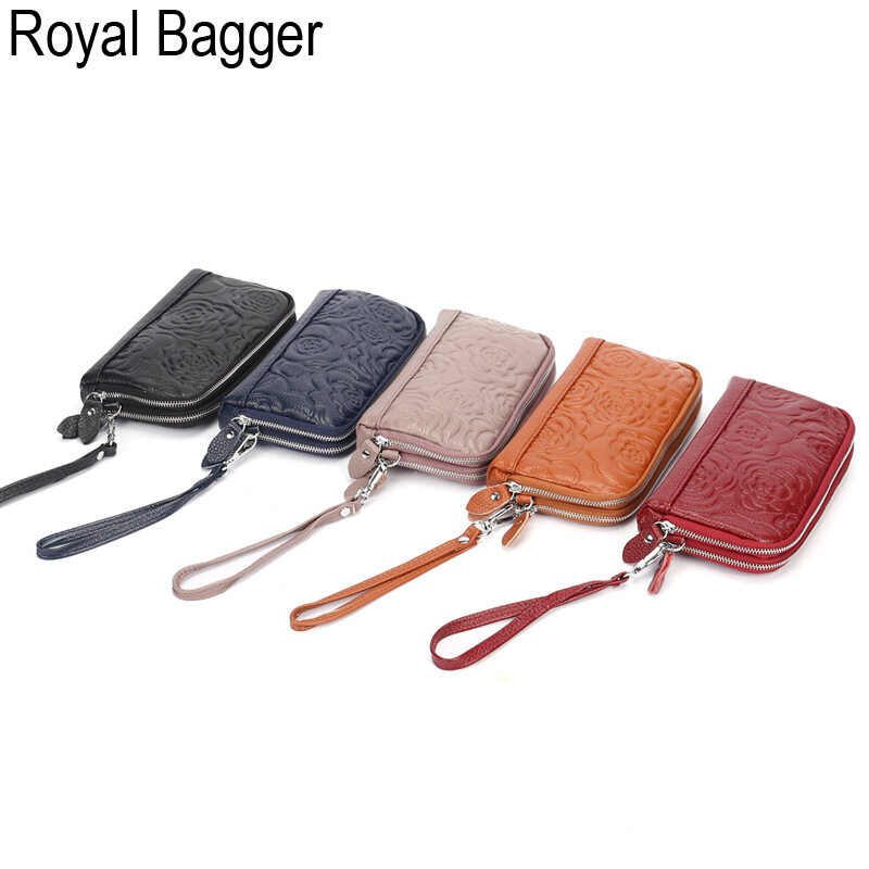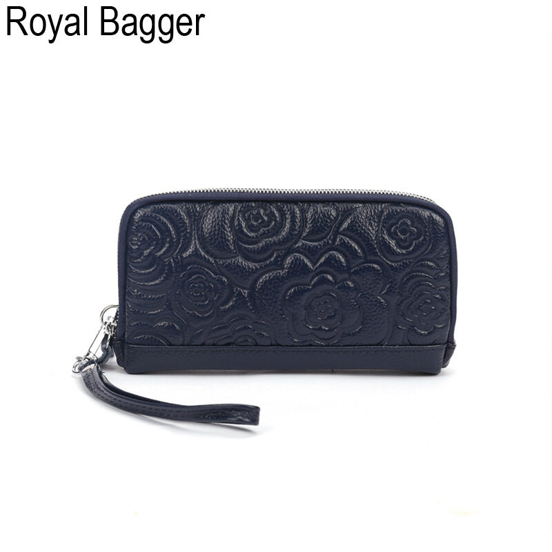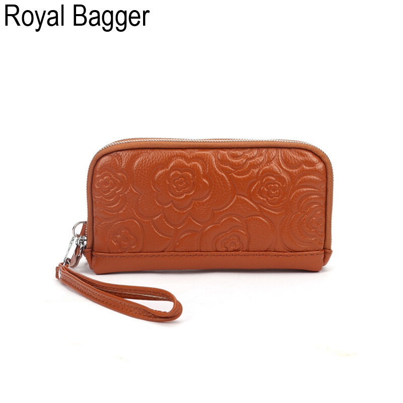 Royal Bagger 100% Genuine Cow Leather Purse Fashion Ladies Wallet Large Capacity Zipper Two Fold Long Clutch Bag Elegant Wallets For Women Girls