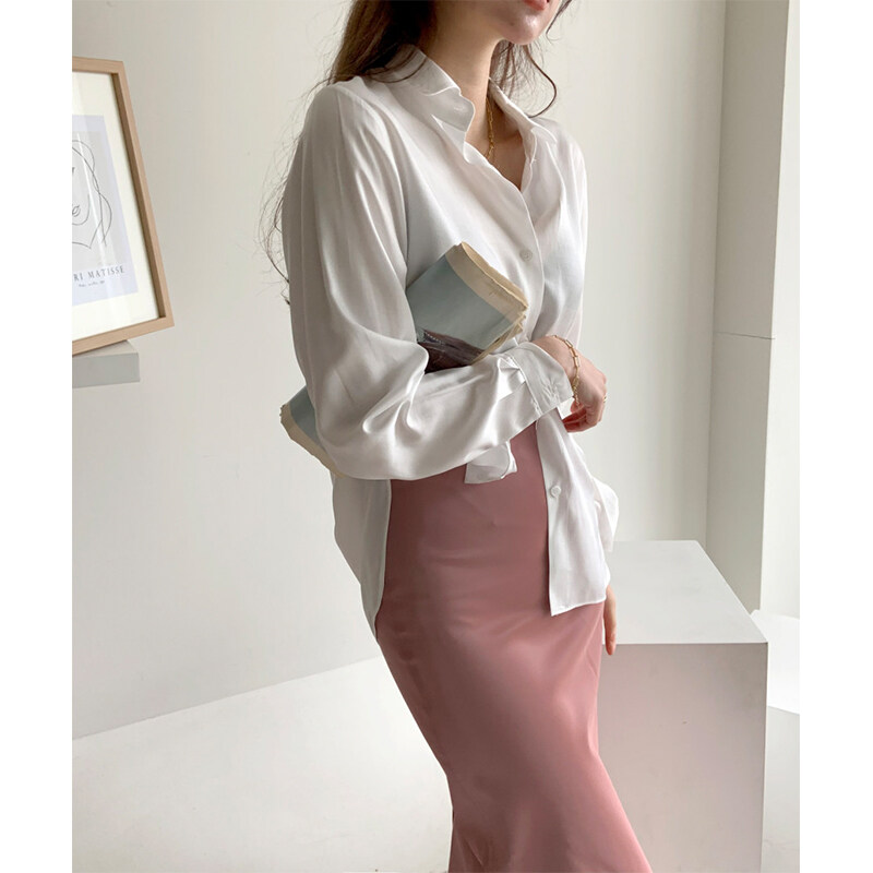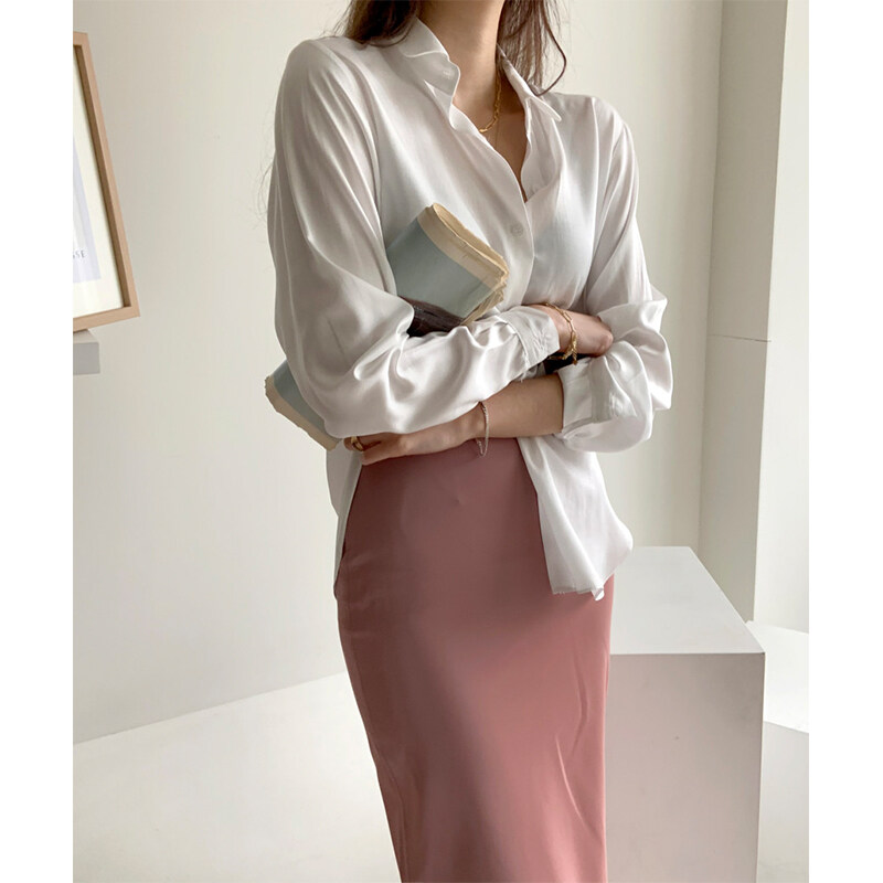 HolidayQueen High quality chic fashion brim joker satin white shirt long sleeve blouseWomen's clothing HQTE101155