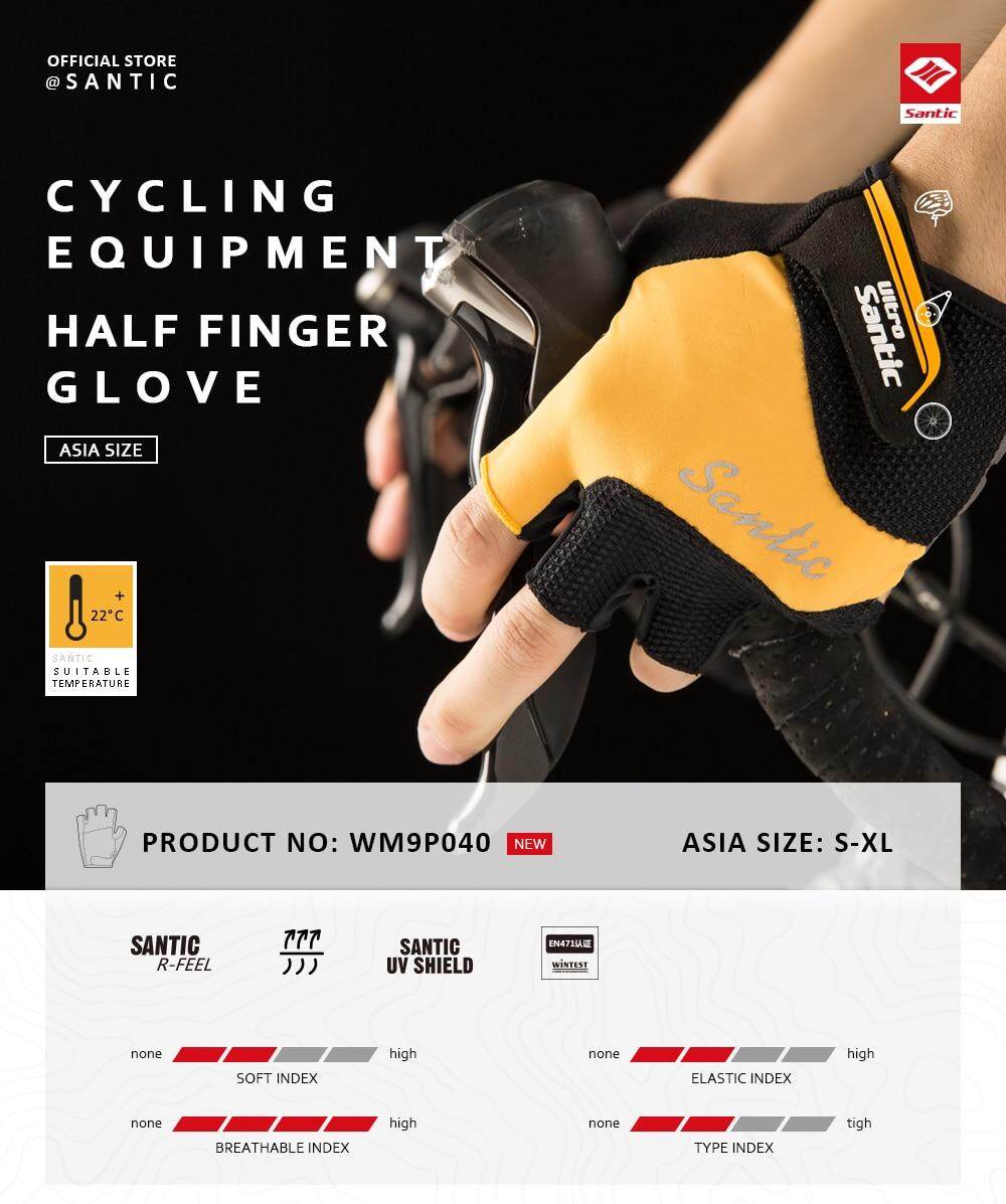 Santic Women Men Cycling Gloves Breathable Non-slip Bicycle Bike Half Finger Gloves