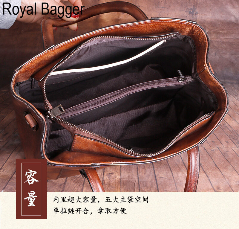Royal Bagger New Fashion Tote Bag For Women Genuine Cow Leather Casual Large Capacity Shoulder Bag Elegant Ladies Girl Crossbody