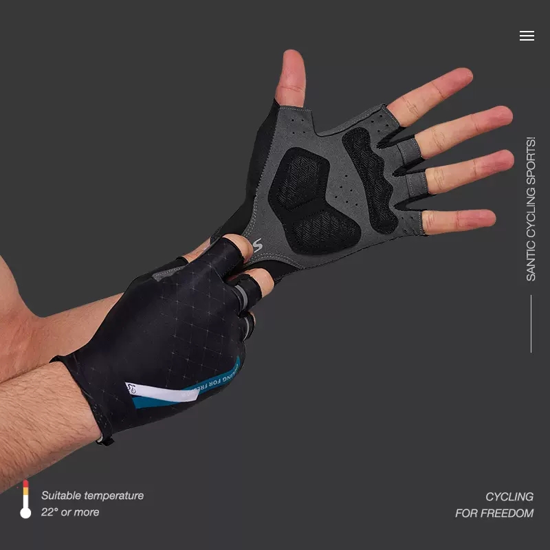 Santic Men Cycling Gloves Breathable Non-slip Shockproof Bike Bicycle Short Finger Gloves