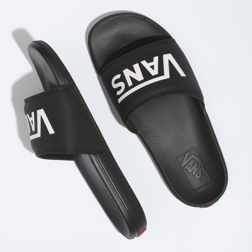 Inspired by Vans' classic vulcanized roots, the Mens Vans La Costa Slide-On is made with a synthetic nubuck strap featuring soft synthetic rubber and stretch textile lining for comfort. It also includes lightweight, flexible, and durable injected ULTRACUSH™ Lite waffle outsoles, water-based inks and glues, and a Vans logo.