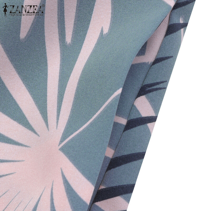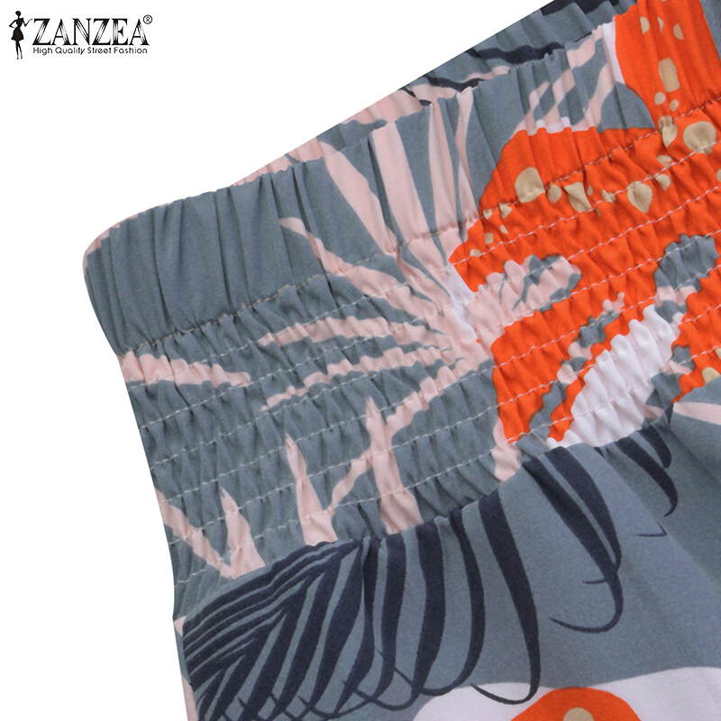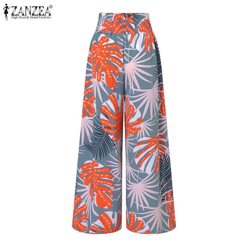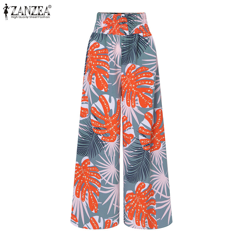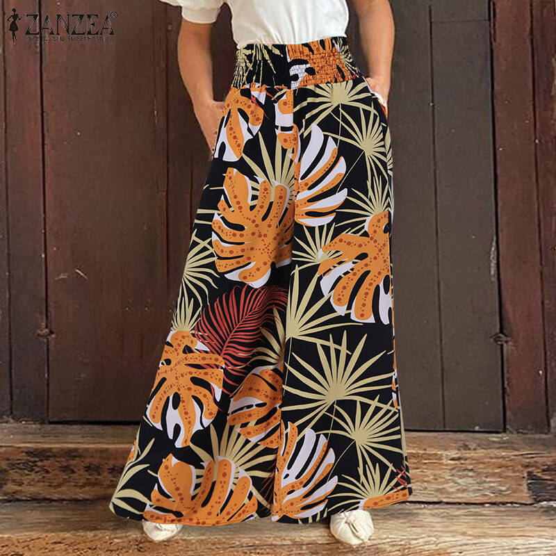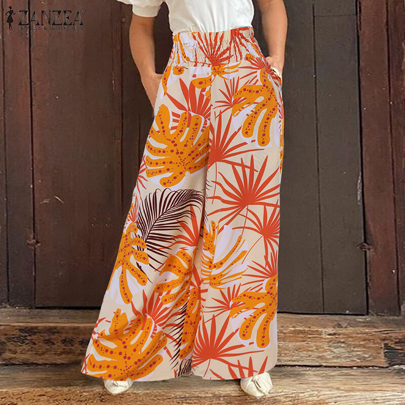 [Clearance Sale]ZANZEA Womens Trousers Palazzo Elastic High Waist Casual Loose Printed Long Pants CLE