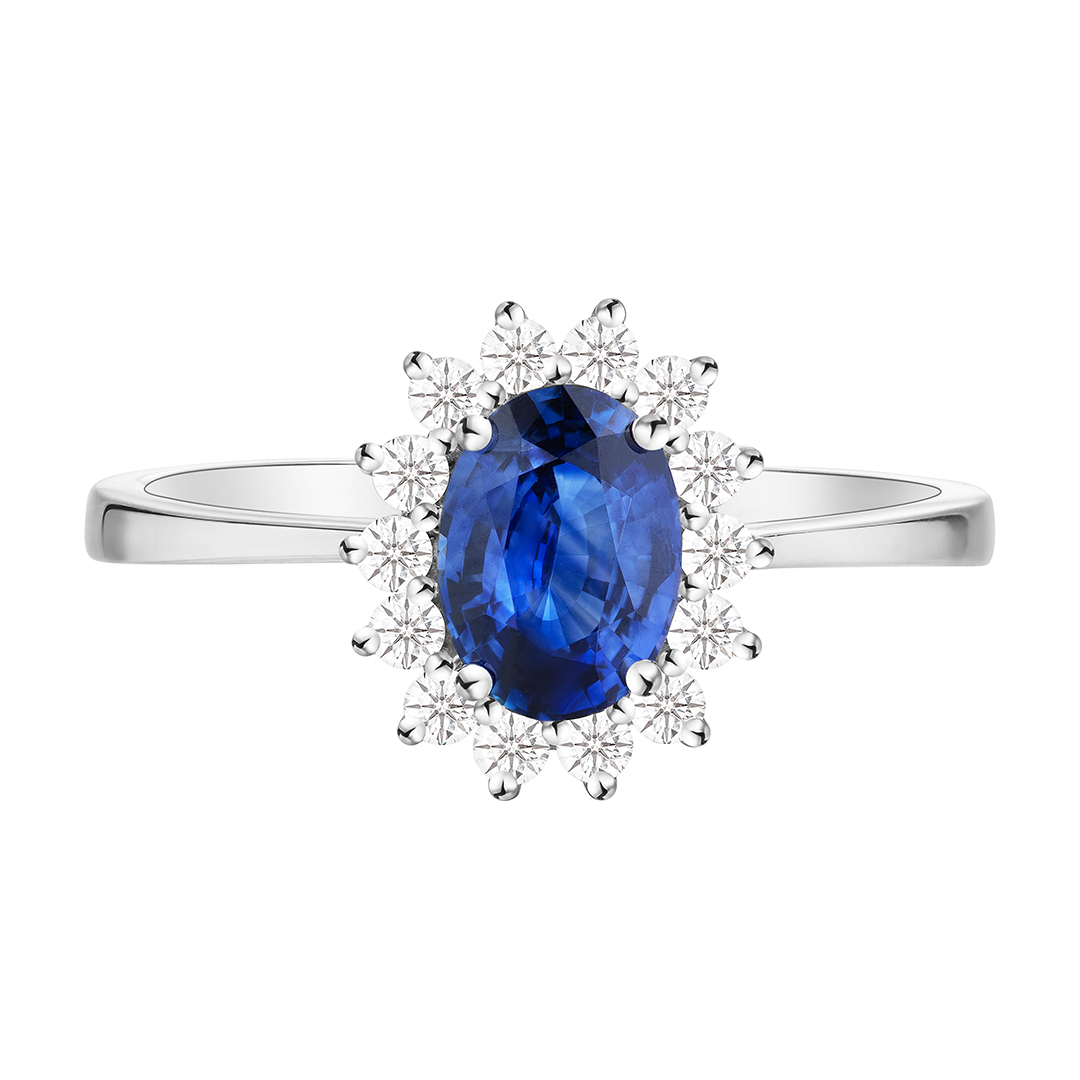 Lee Hwa Jewellery 18K White Gold Sapphire Ring with Diamonds
