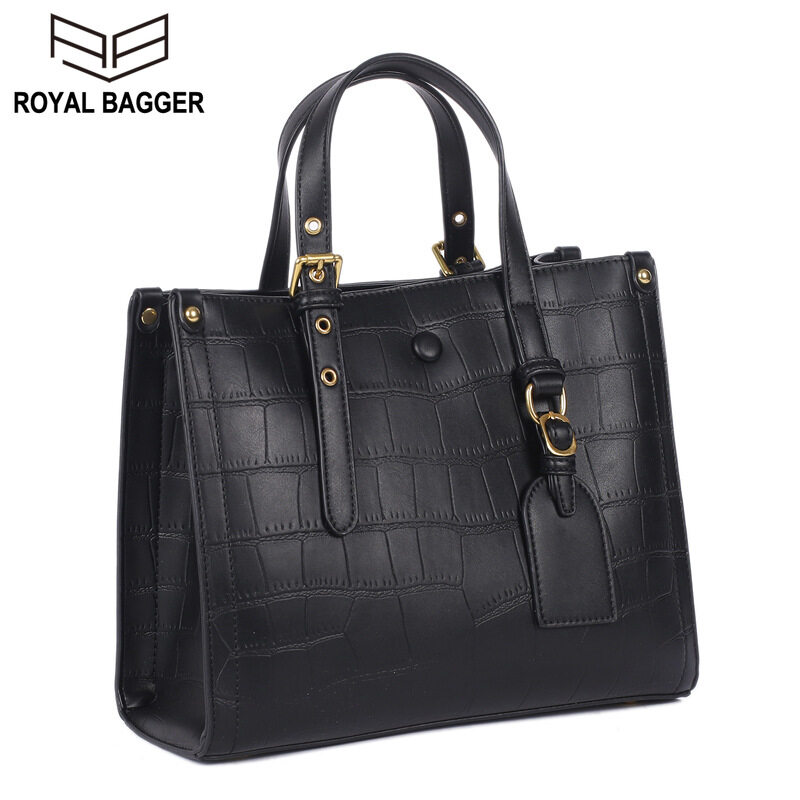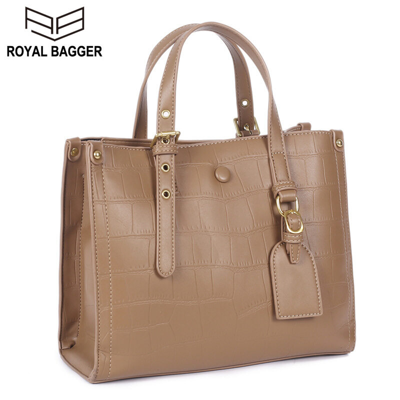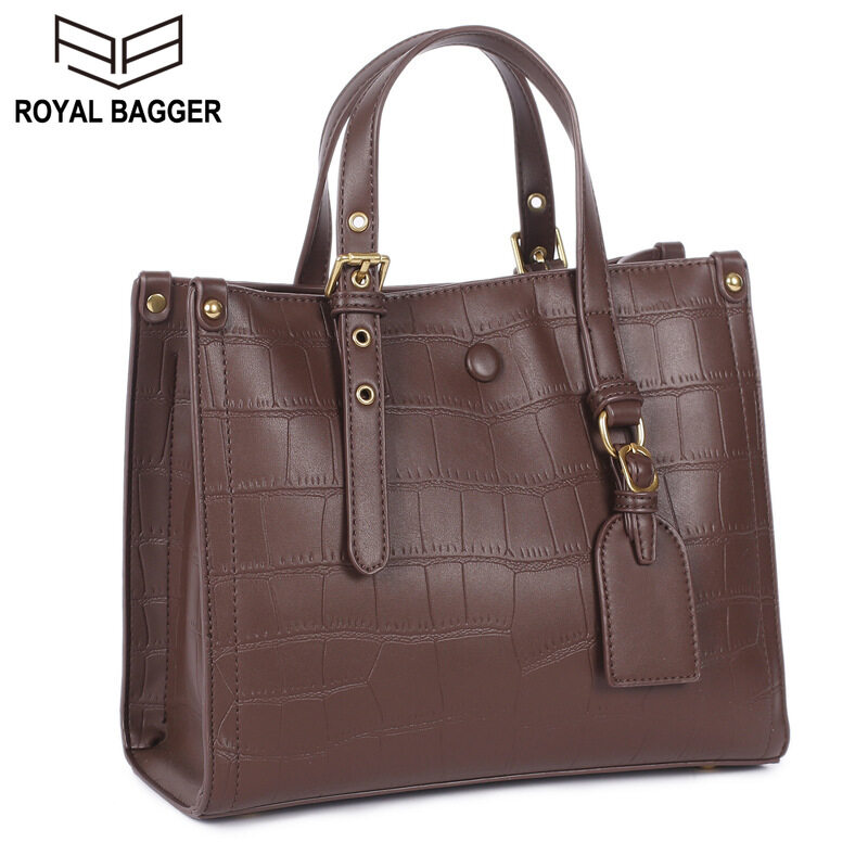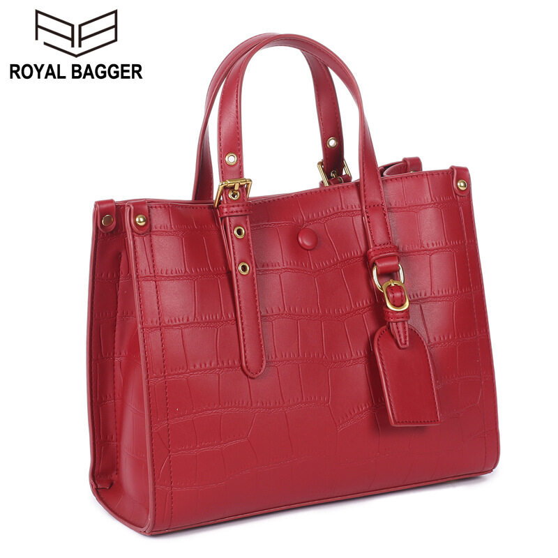 Royal Bagger New Fashion Tote Bag For Women Genuine Cow Leather Casual Large Capacity Shoulder Bag Elegant Ladies Girl Crossbody