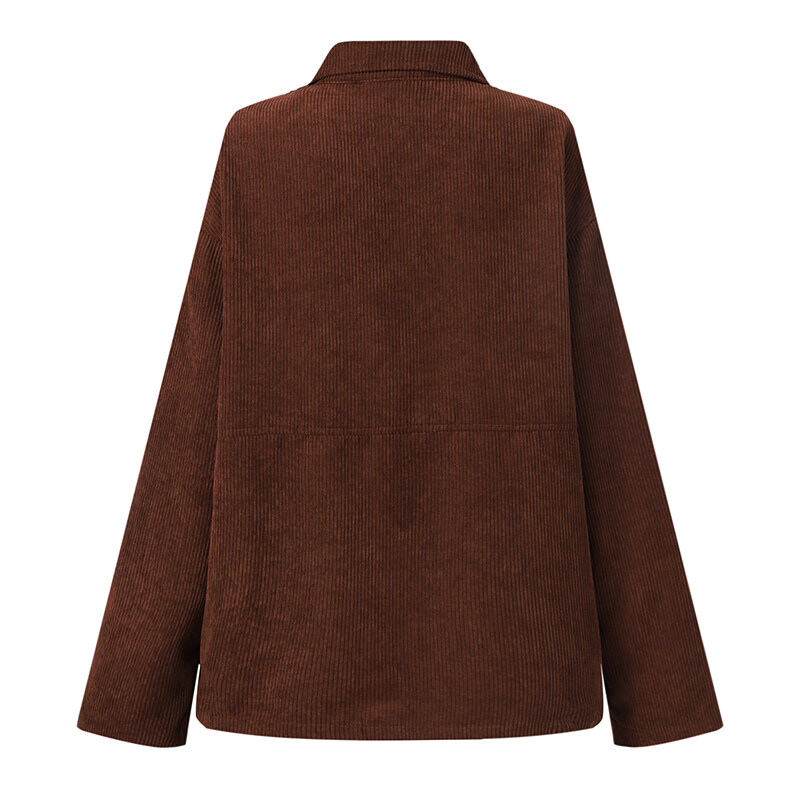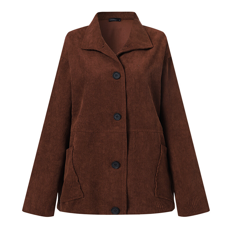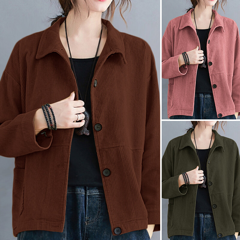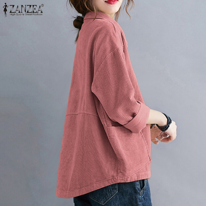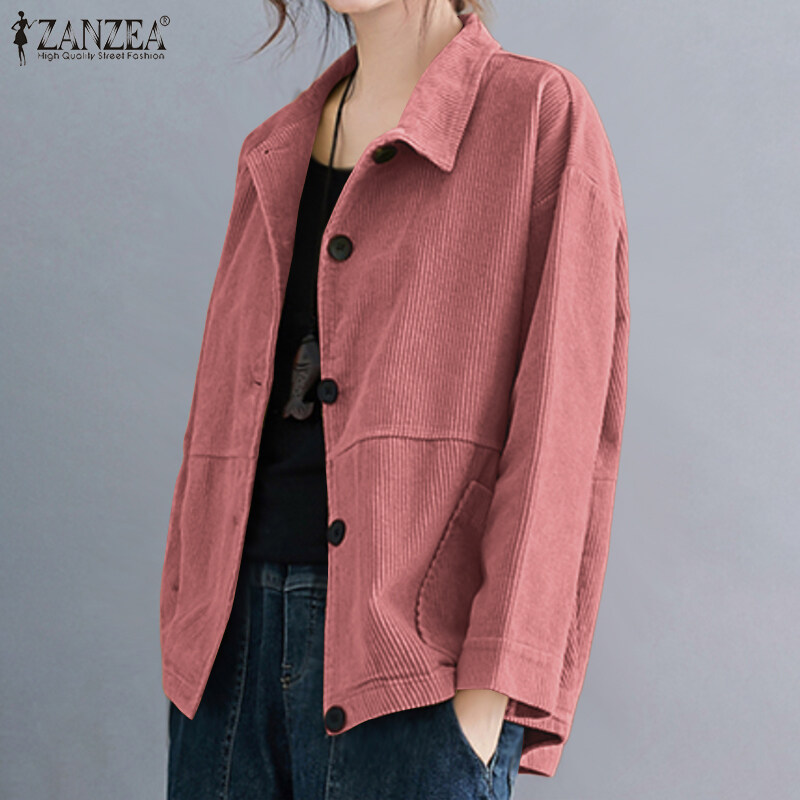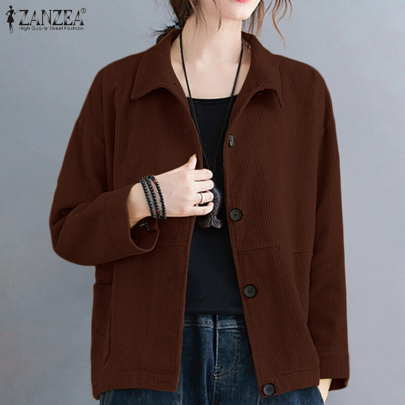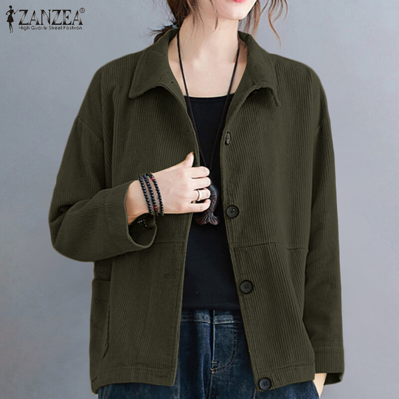 ZANZEA Women Basic Solid Corduroy Long Sleeve Coat Cardigan Collare Neck Jacket Outwear