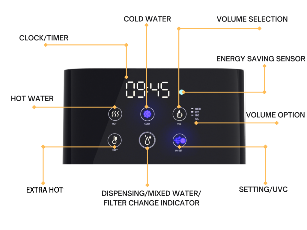 5-stage water purification – (Sediment, ActiveCarbon, UF Membrane, Carbon Block, UV LED)