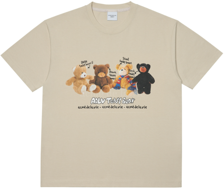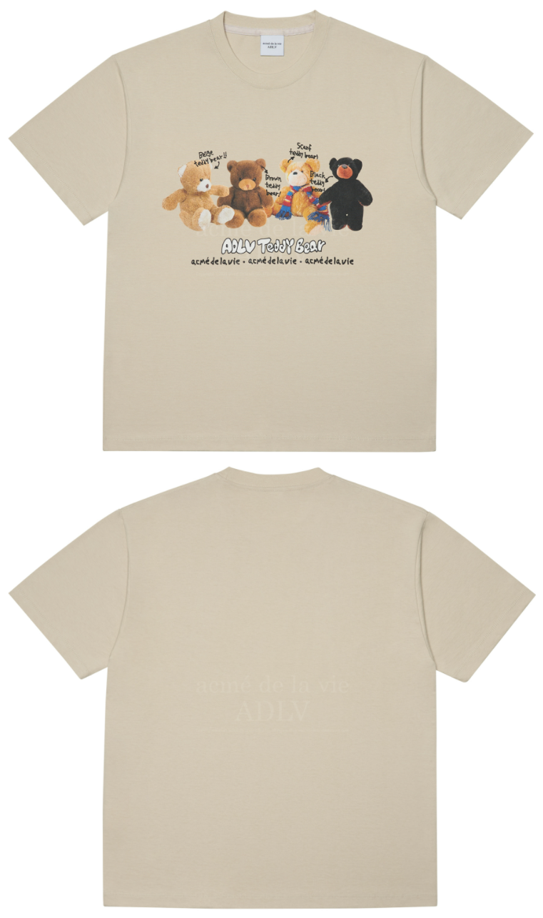 [acme de la vie] ★With the HiddenTag OVERSIZED★ TEDDY BEAR DOLL FRIENDS MUSHROOM COLLAGE DAISY CHICK COLLAGE ADLV SHORT SLEEVE T-SHIRT