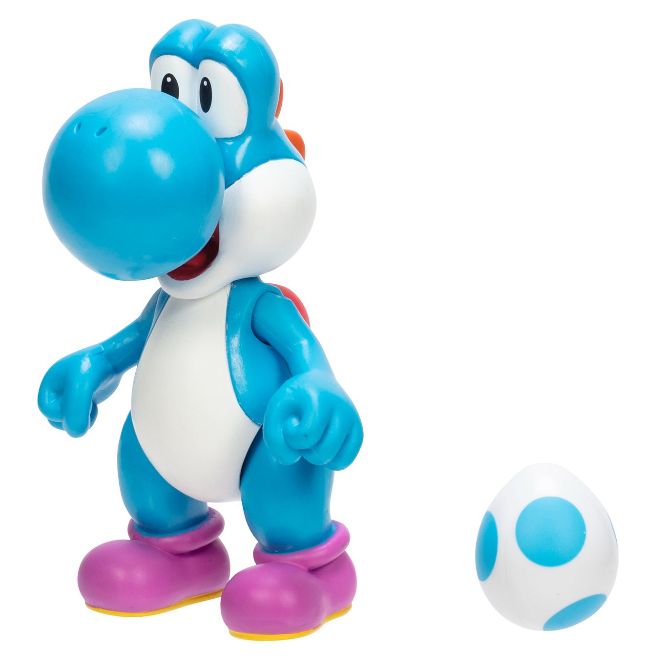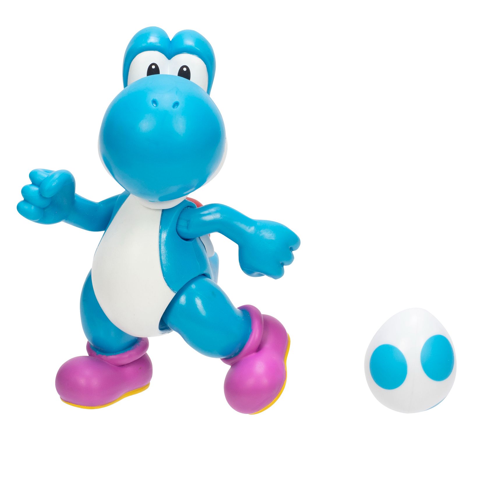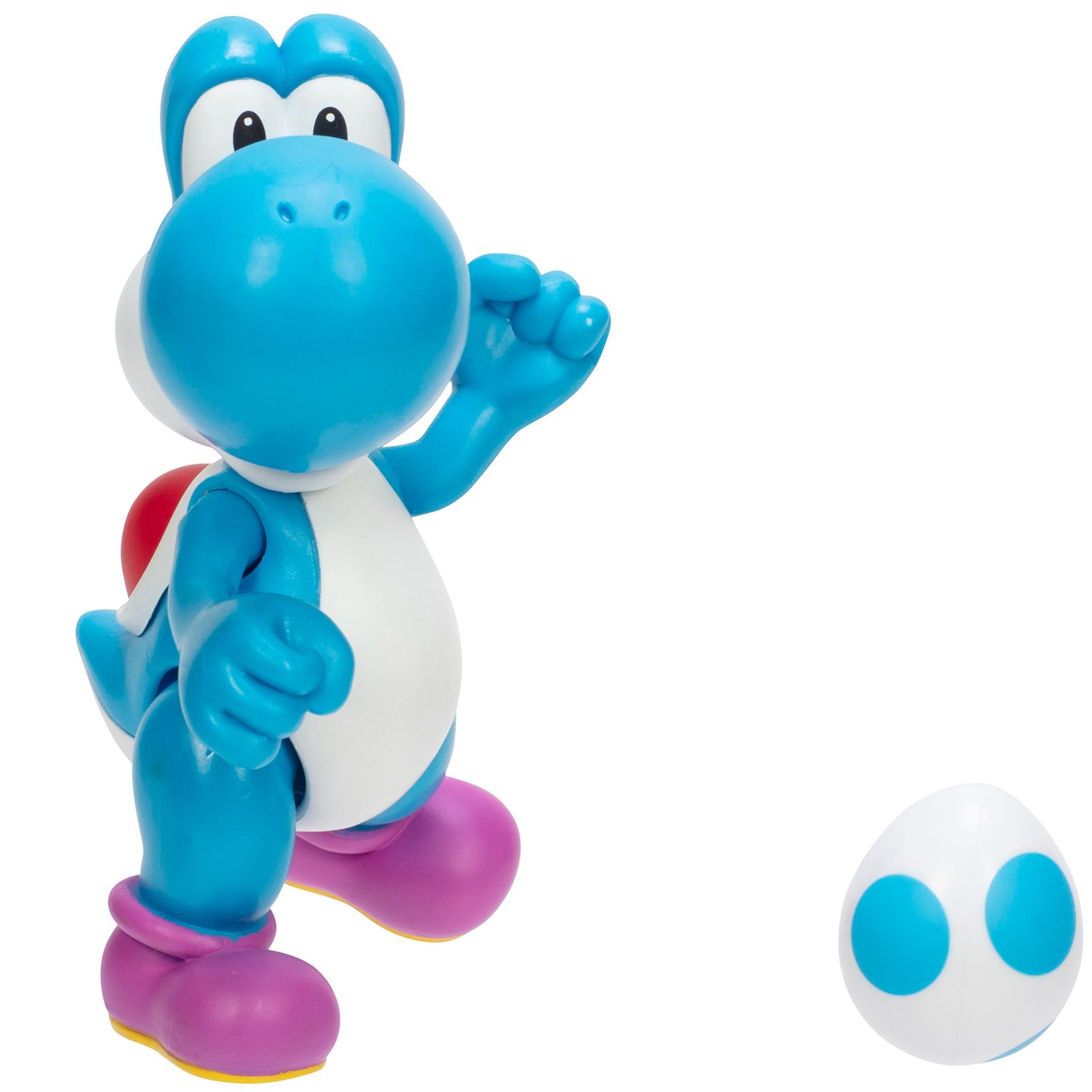 Super Mario Light Blue Yoshi 4-inch Articulated Figure with Egg Accessory, Collectible Figurines
