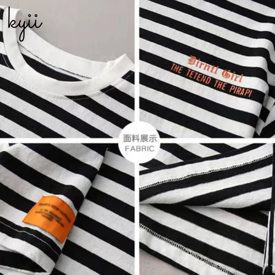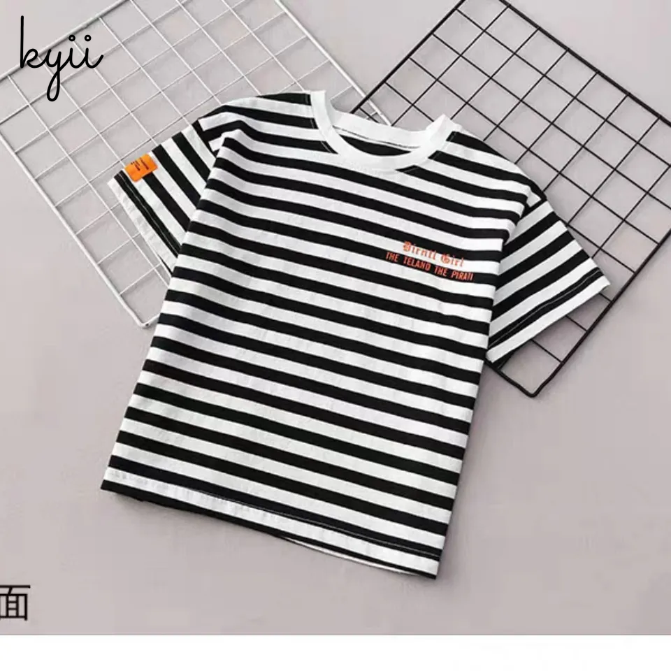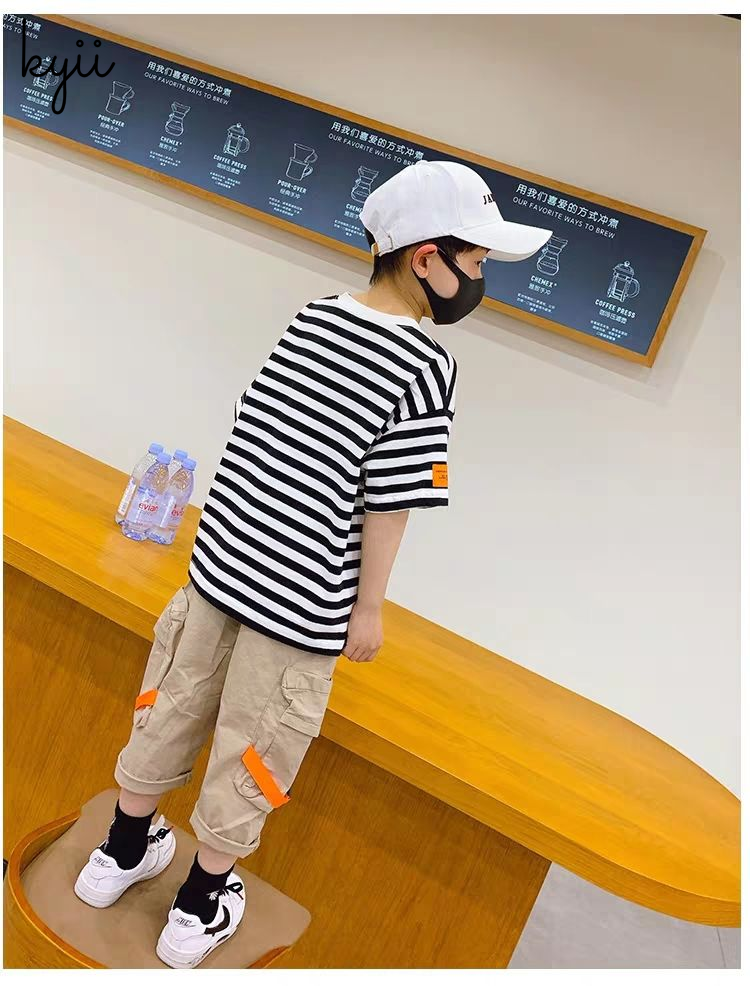KYII stripe short sleeve Casual boys cotton summer loose shirt Korean Shirt kyb005