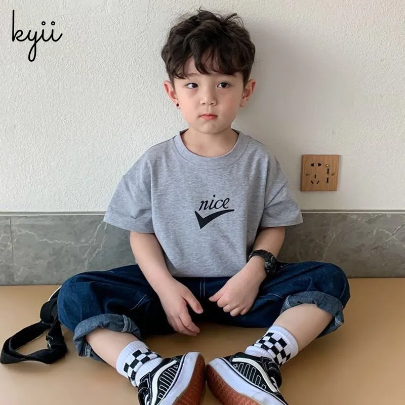 KYII Cotton children short sleeve T-shirt boy Cartoon Korean printe Top kyb015