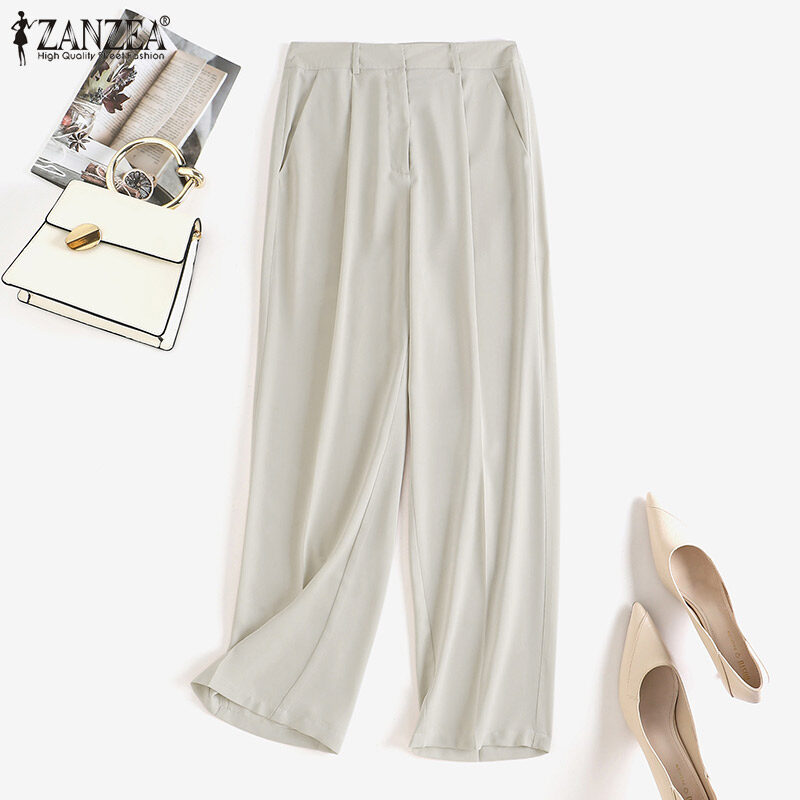 ZANZEA Korean Style Women Plain Casual Trousers Office Lady Commute Long Suit Pants Slacks