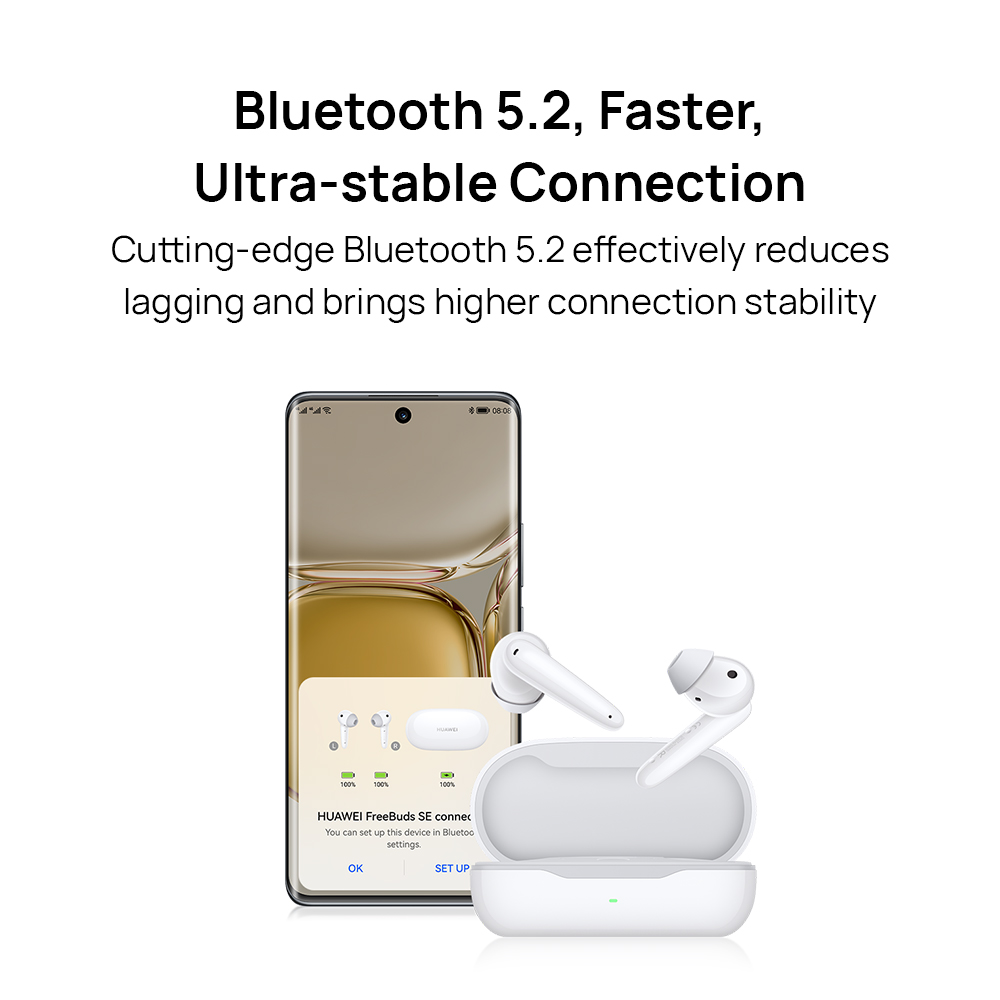 【24 Hours Long-lasting Power】HUAWEI FreeBuds SE wireless Bluetooth earbuds come with a charging case, which offers up to 24 hours of battery life, for easy listening whenever you want.